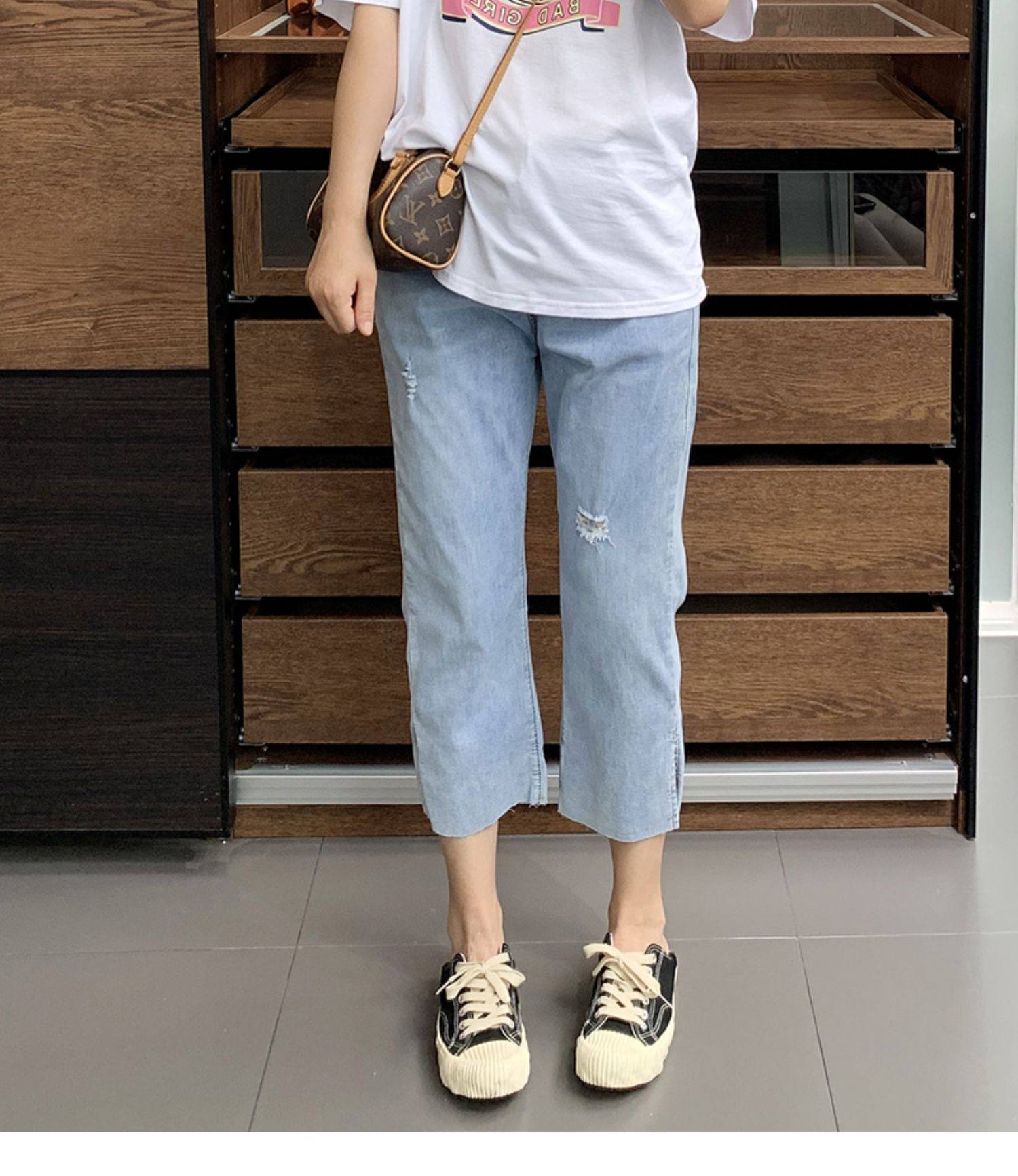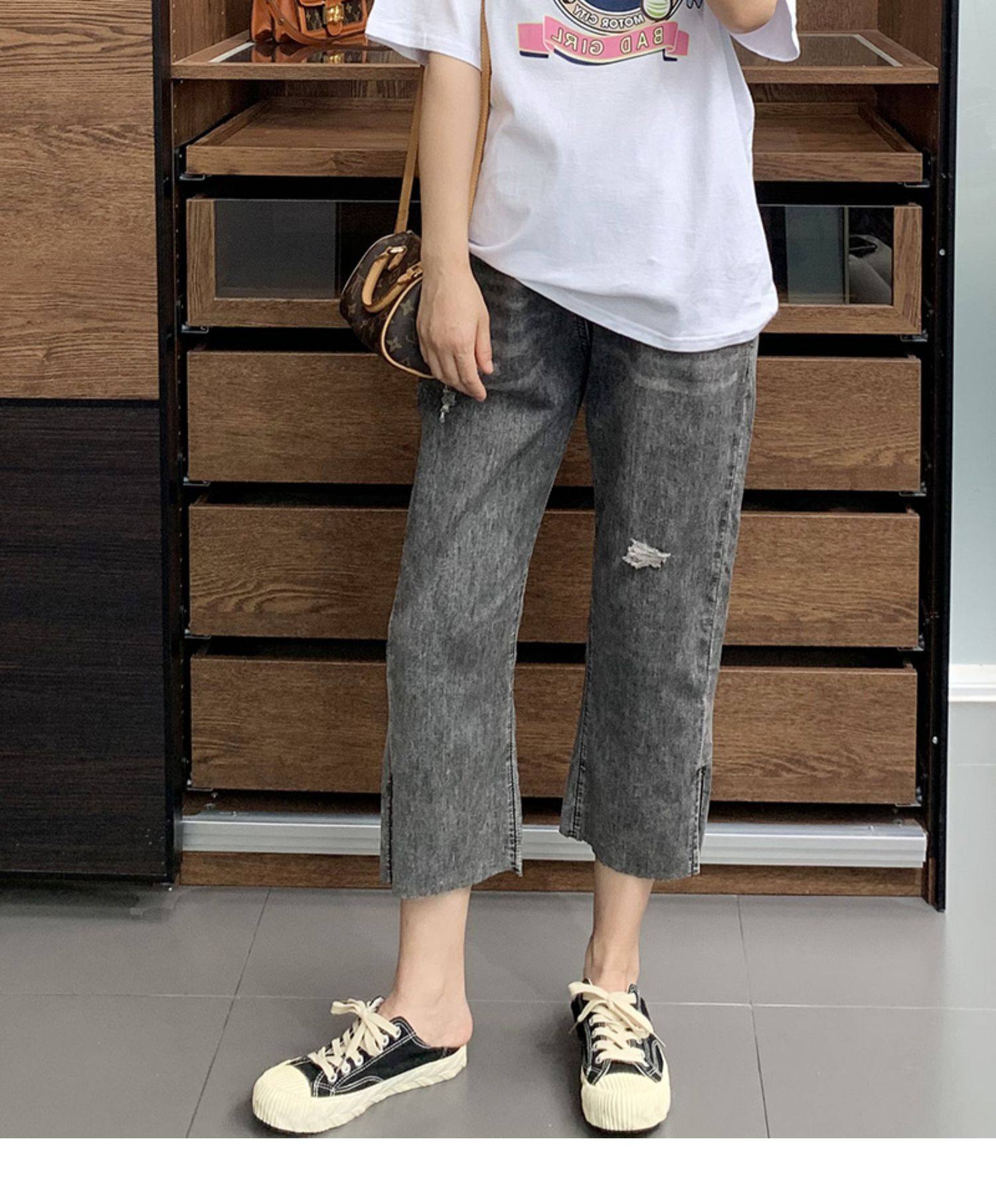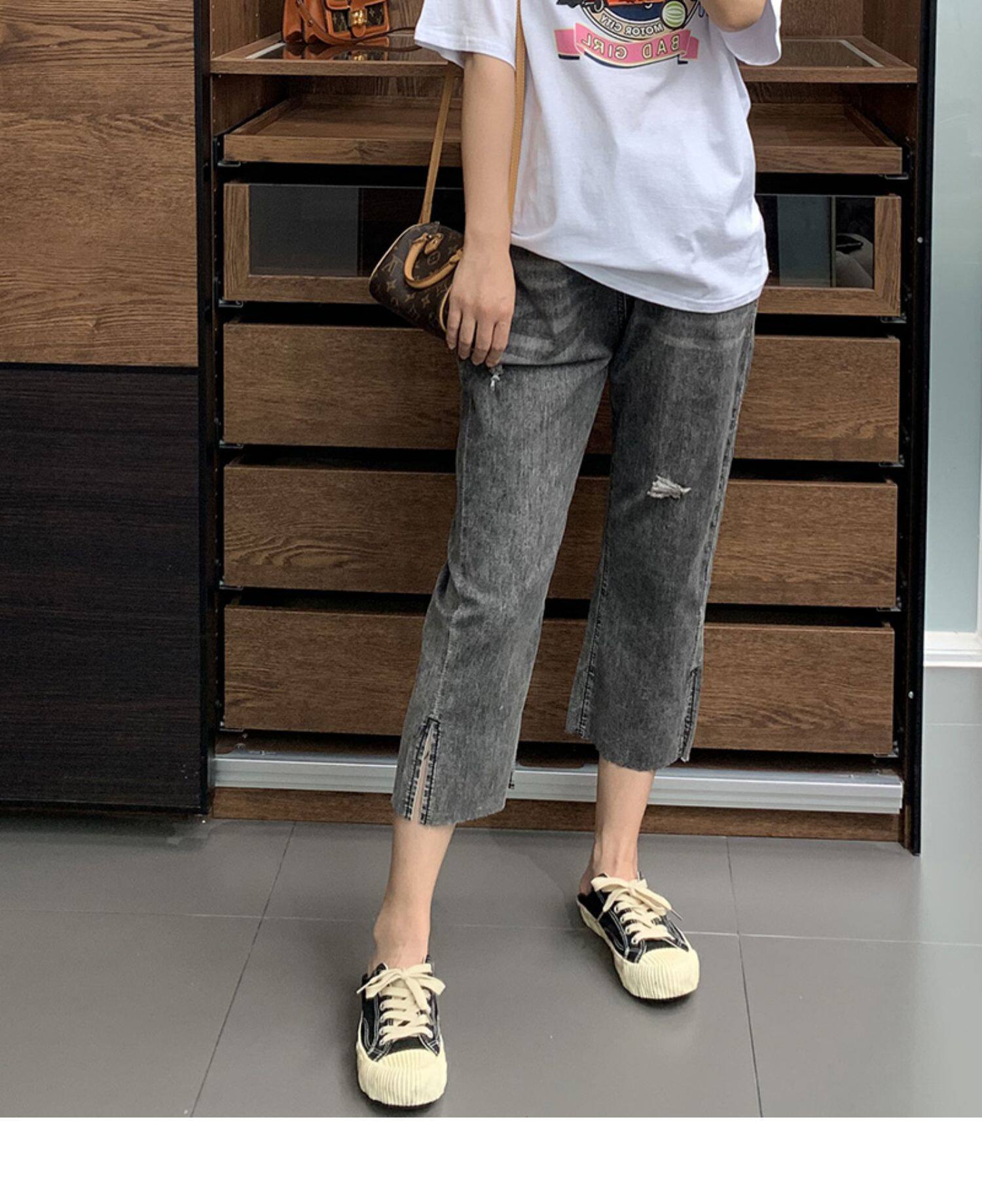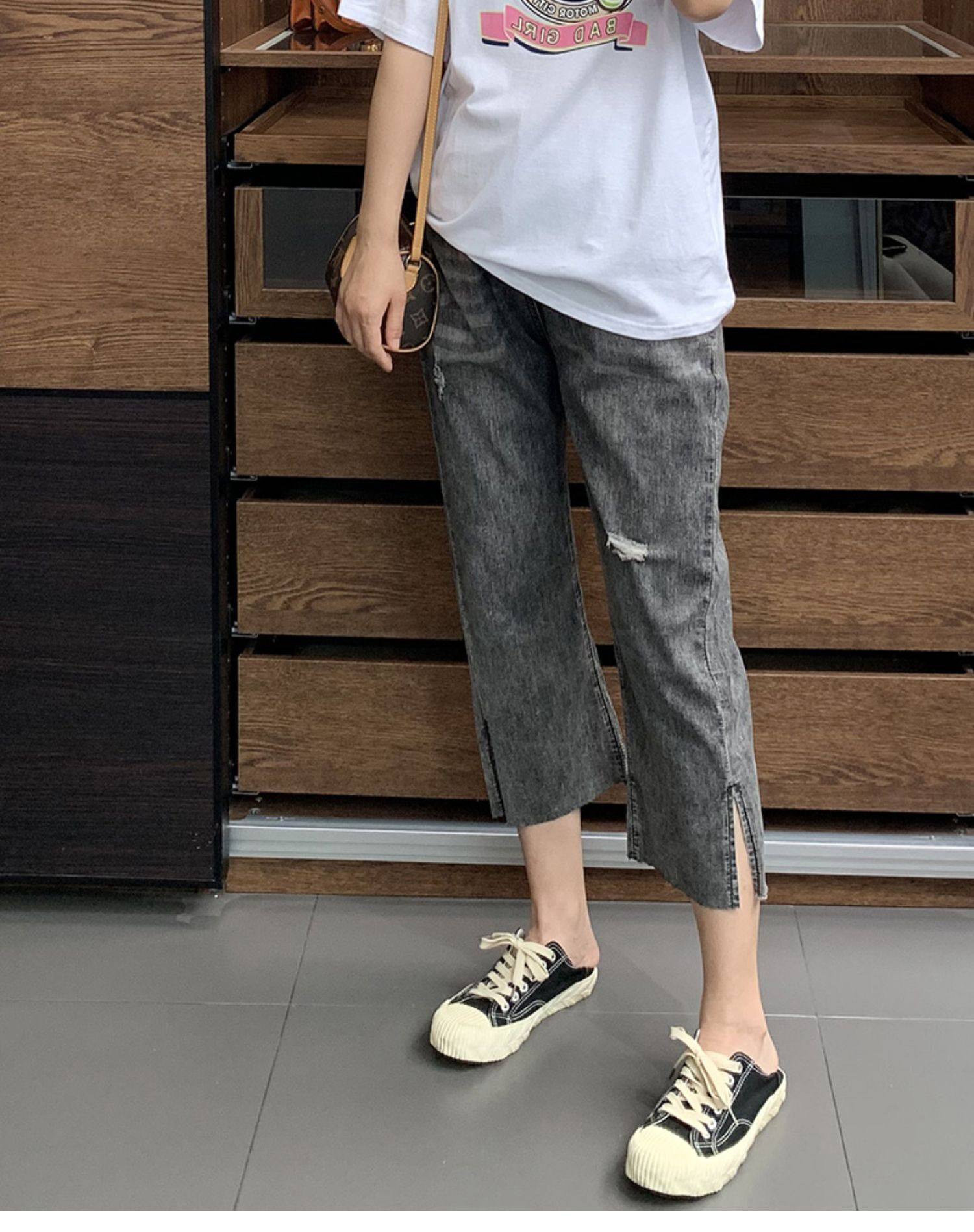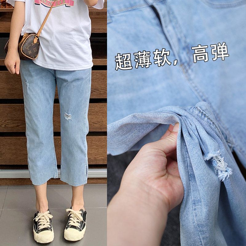 Гигантский мягкий большой размер 200 кот, тонкие, мясо, высокая бомба, свободная талия, наклонение, семь штанов с прямой трубкой с семью точками