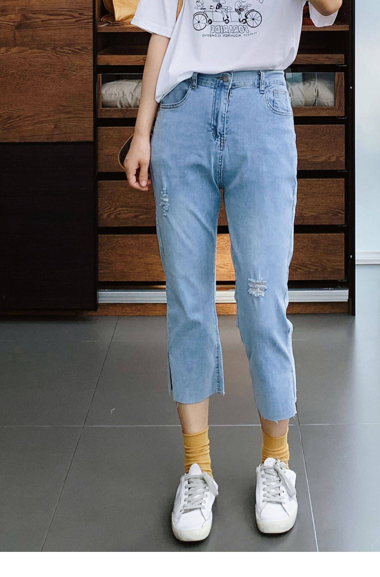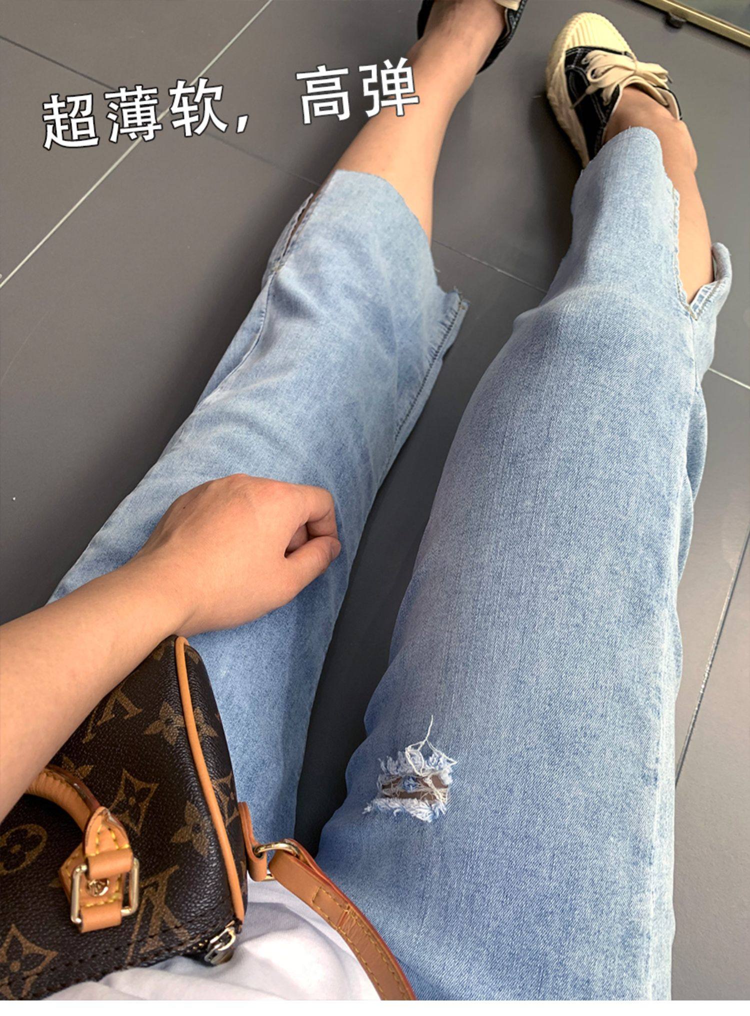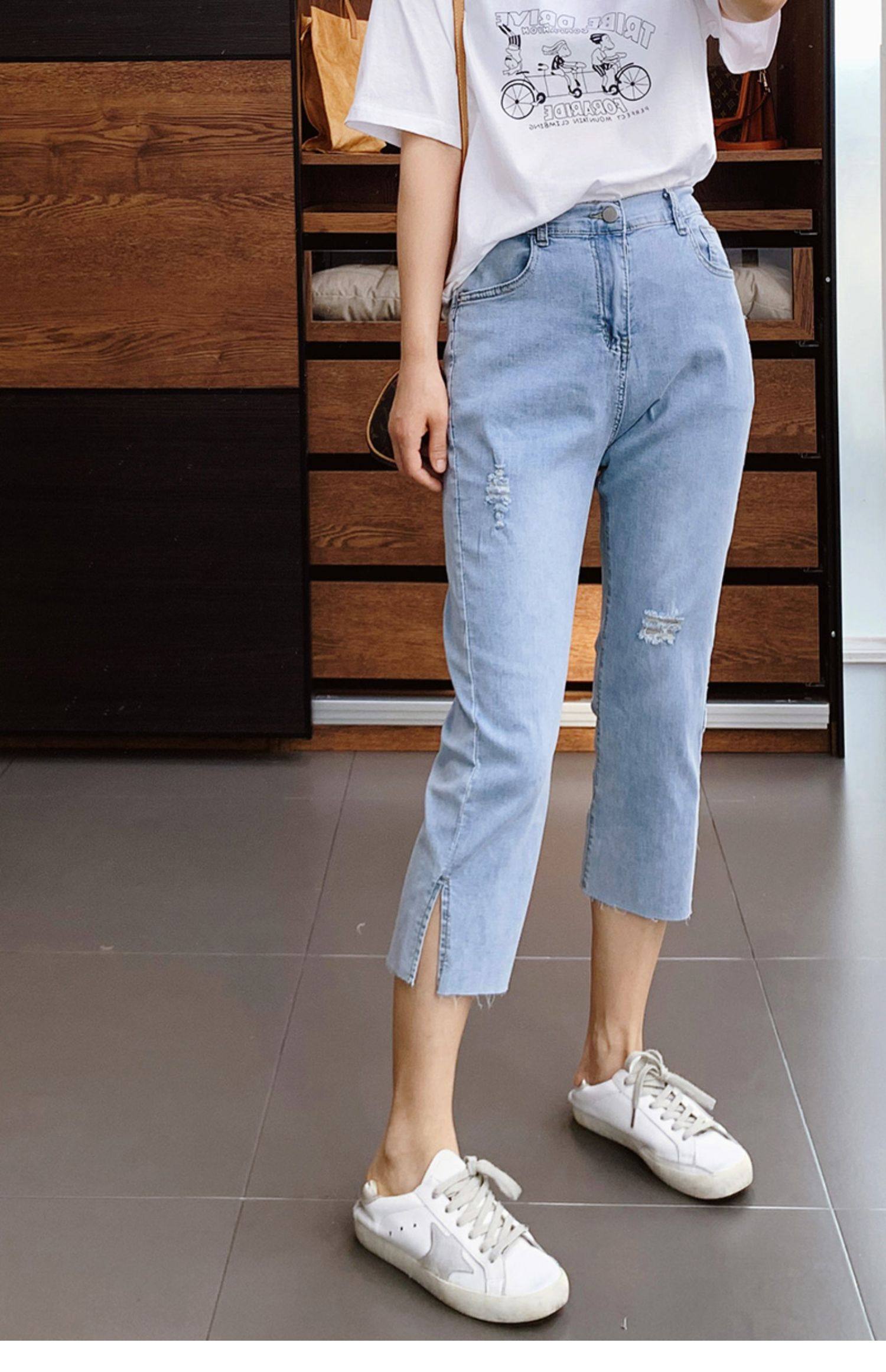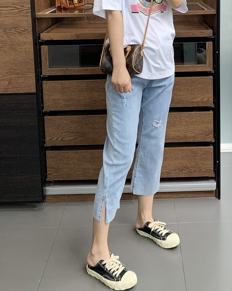Гигантский мягкий большой размер 200 кот, тонкие, мясо, высокая бомба, свободная талия, наклонение, семь штанов с прямой трубкой с семью точками