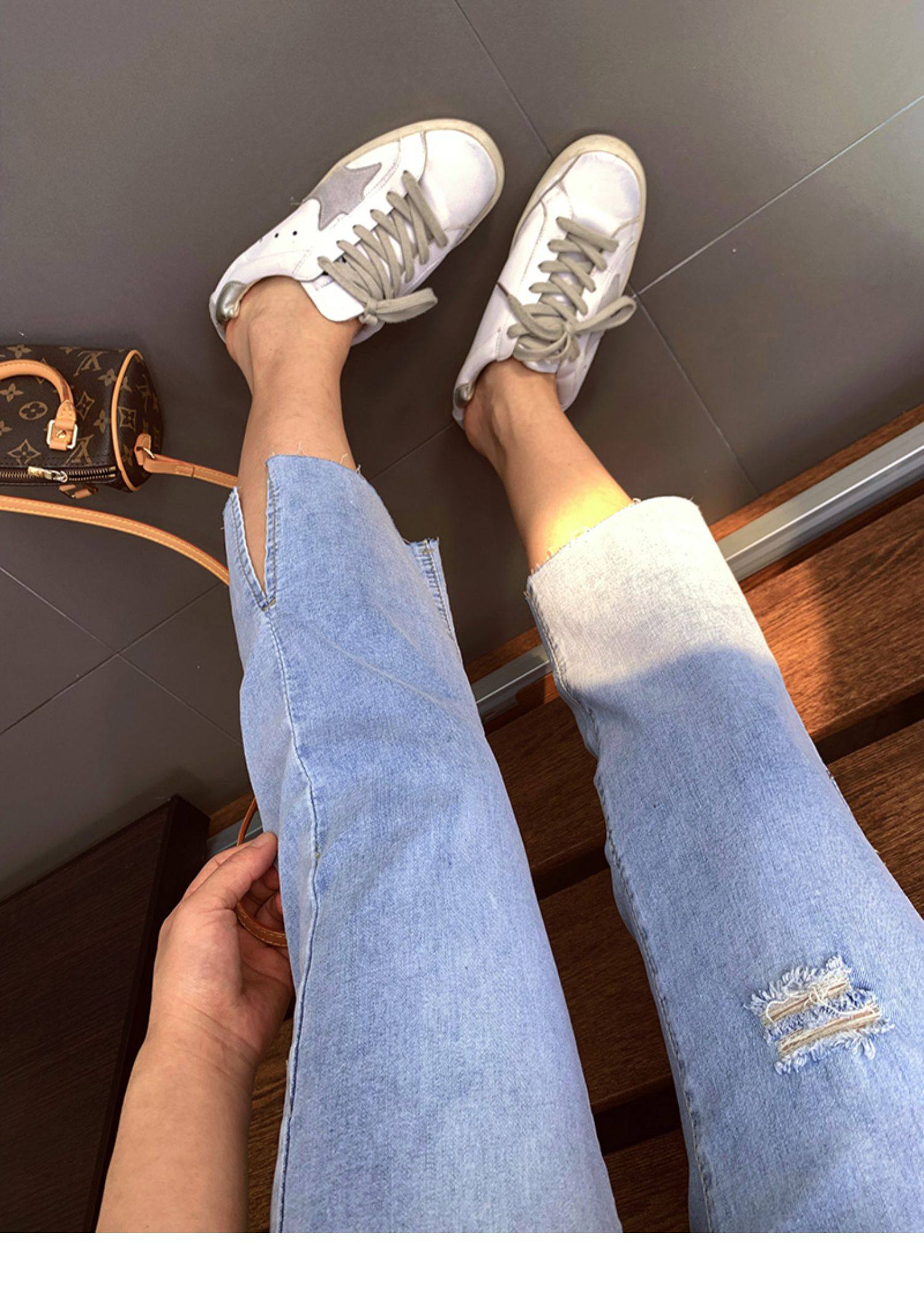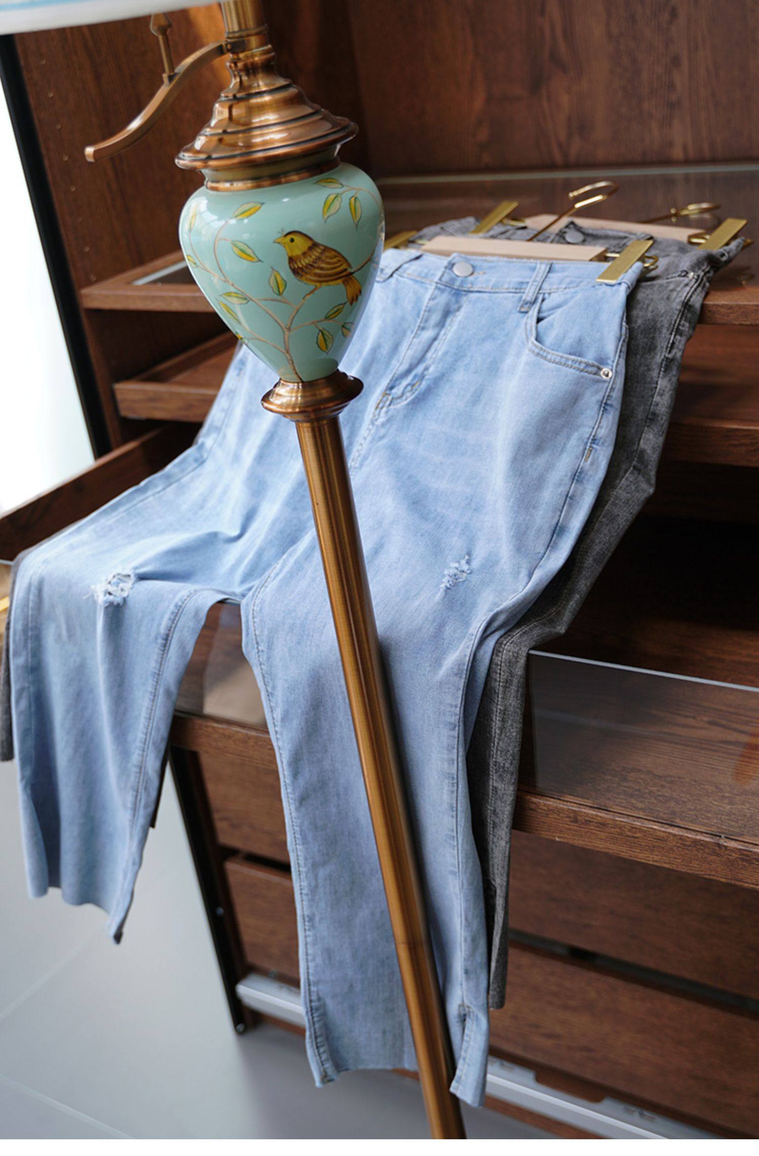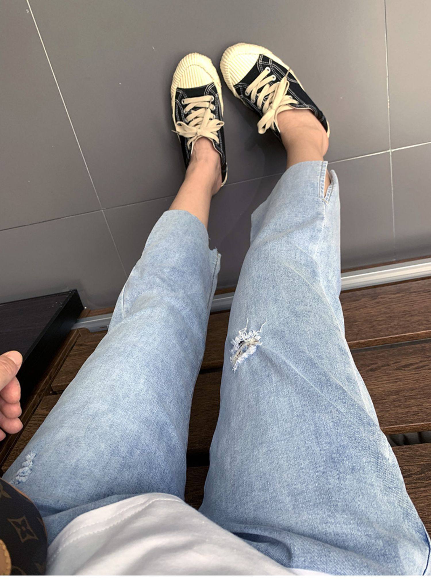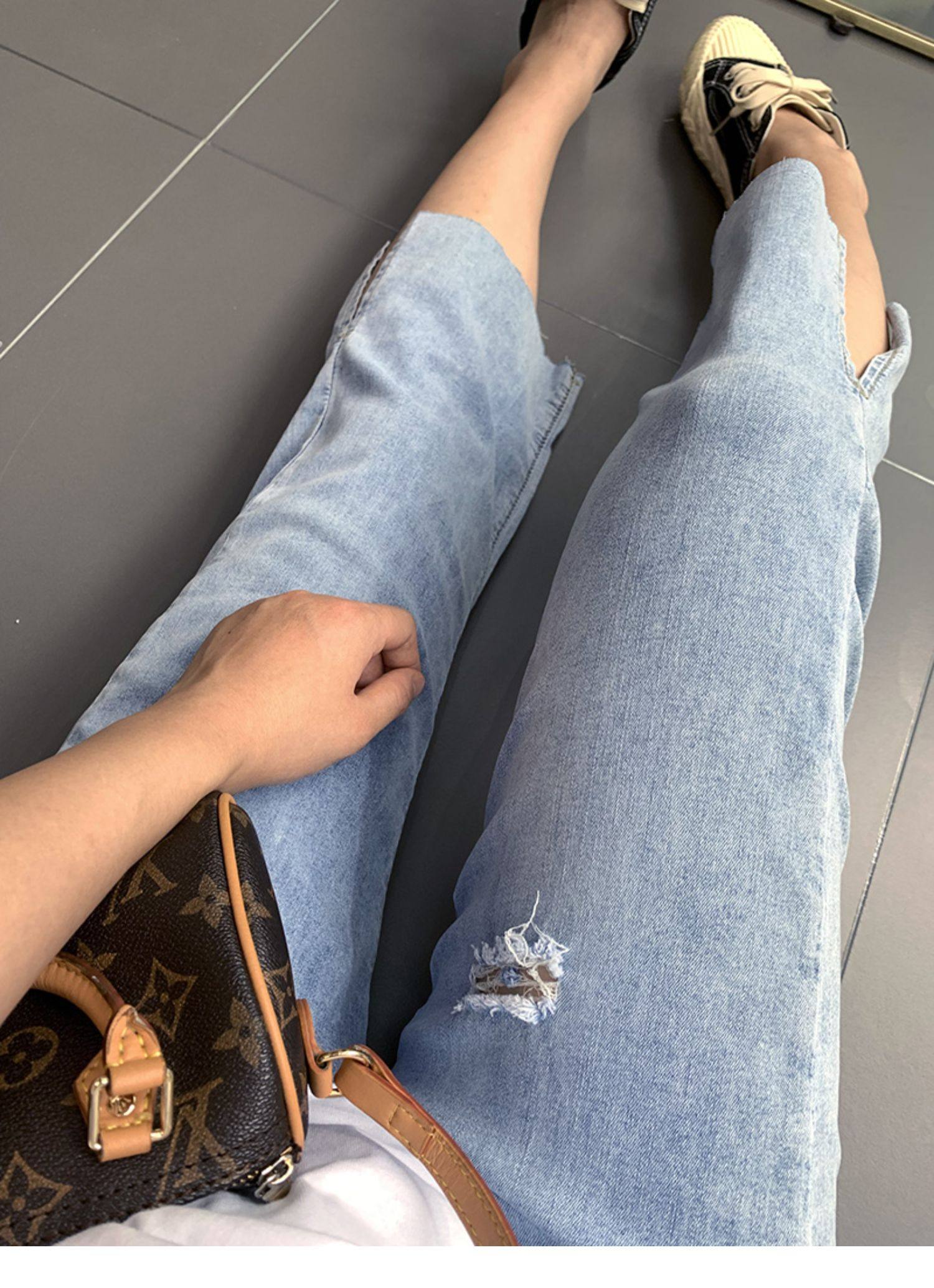 Гигантский мягкий большой размер 200 кот, тонкие, мясо, высокая бомба, свободная талия, наклонение, семь штанов с прямой трубкой с семью точками