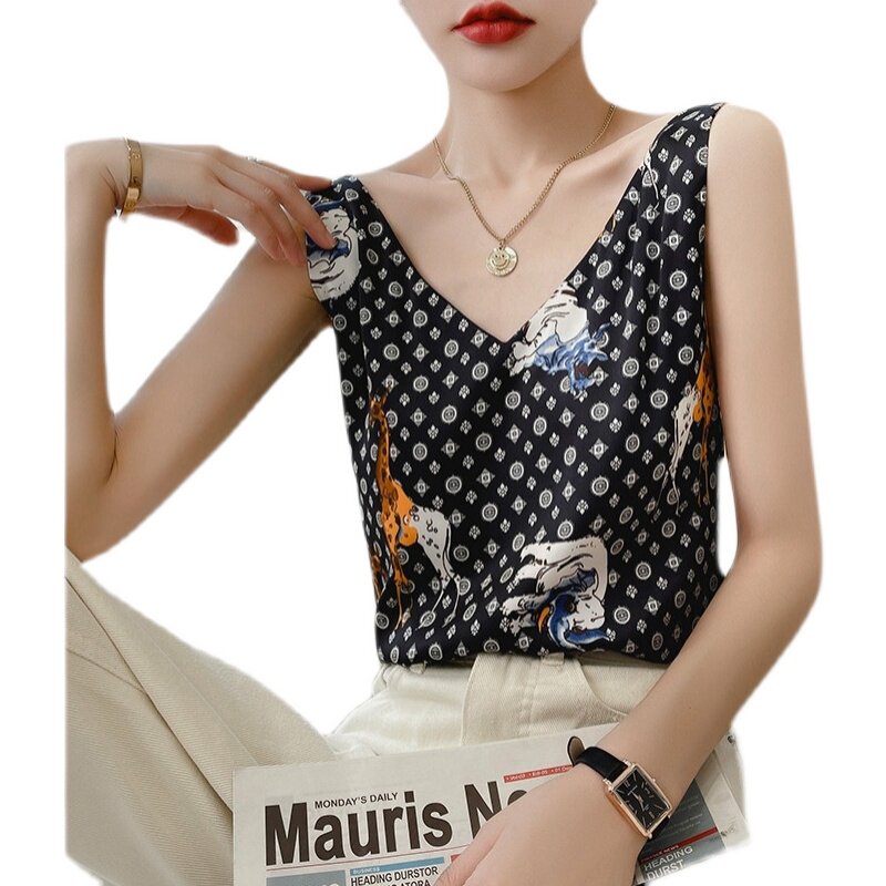 Майка топ, короткий шелковый костюм без рукавов, эффект подтяжки, большой размер, оверсайз