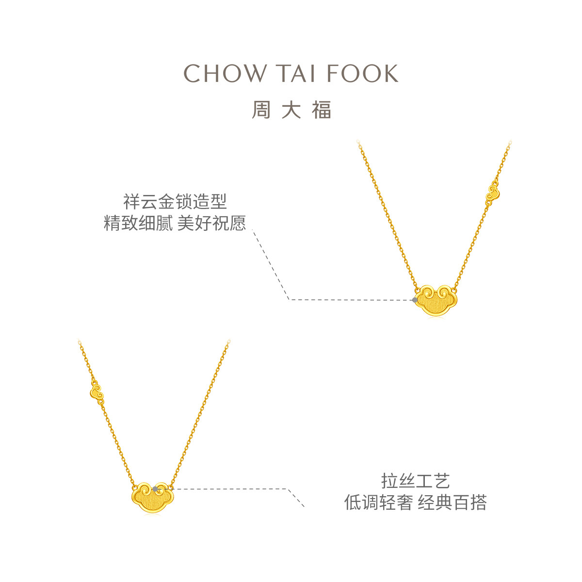 周大福 Золотой защитный амулет, золотое ожерелье, подвеска