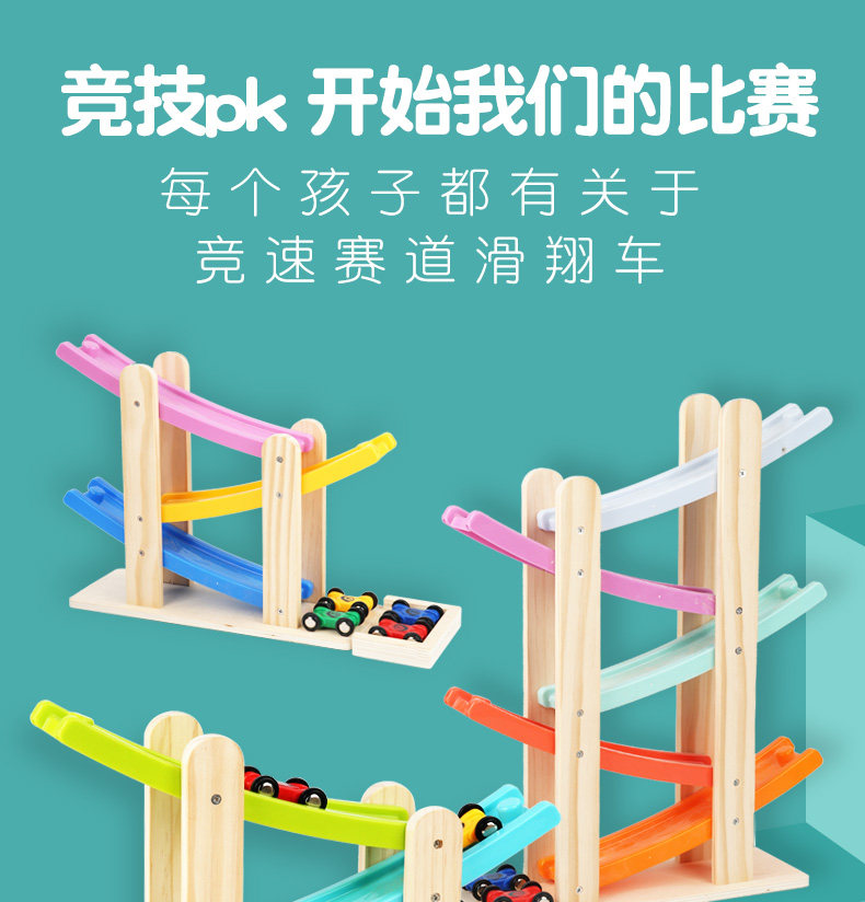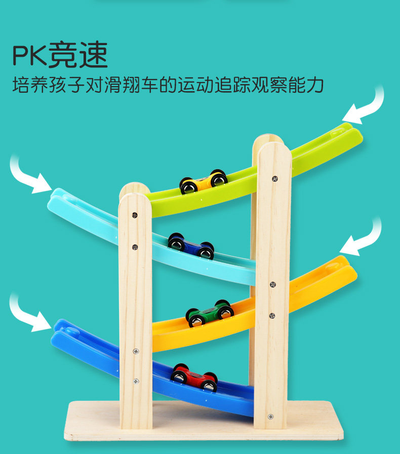 Деревянная игрушечная машина с рельсами из натурального дерева, инерционная игрушка для мальчиков для девочек, 1-2 лет, подарок на день рождения