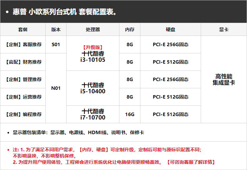 | Тип пакета: | Рекомендация по обслуживанию клиентов: I3-10105/8G/256G SSD/SET DISPLE, Финансовая рекомендация: I3-10105/8G/512G SSD/SET DISPLE, Рекомендация управления: I5-10400/8G/256G SSD/SET DISPLE, Рекомендация по эксплуатации: I5-10400/8G/512G SSD/SET DISPLE, Рекомендация по программированию: I7-10700/16G/512G SSD/SET DISPLE |