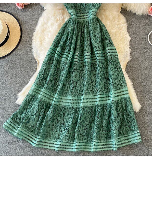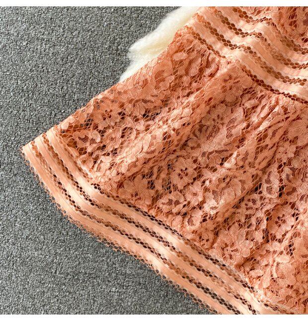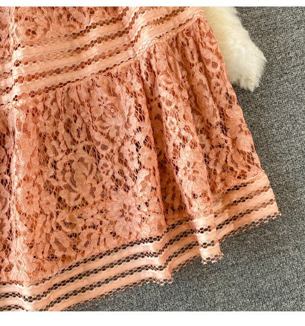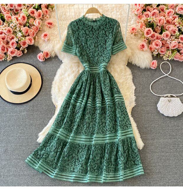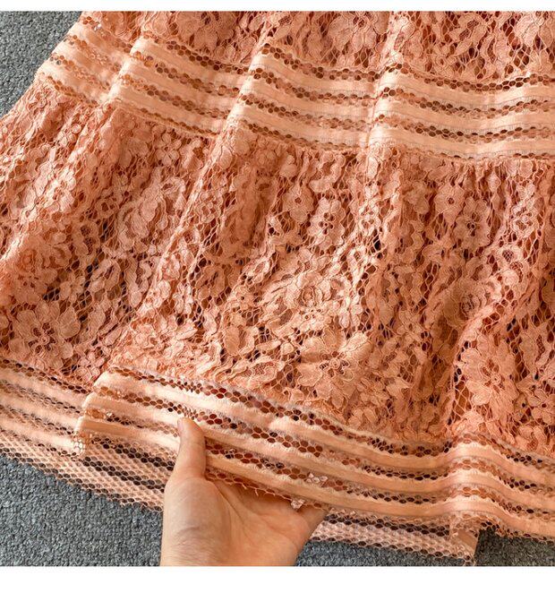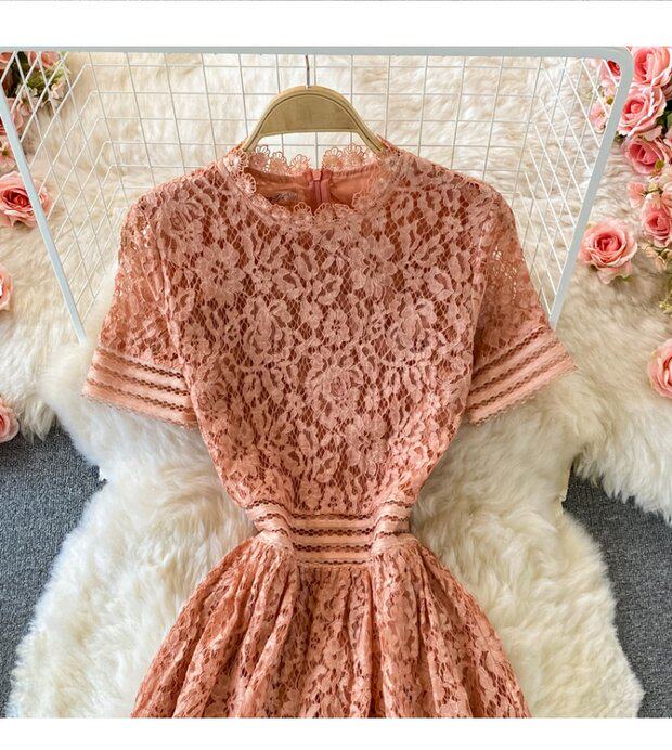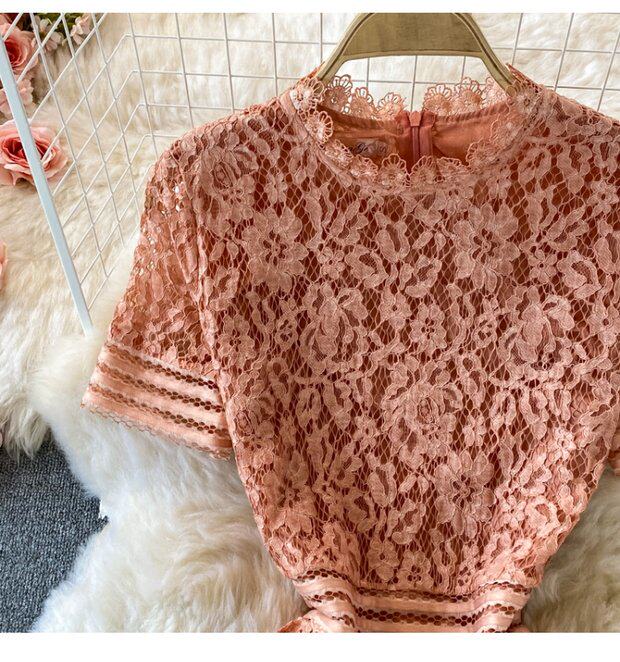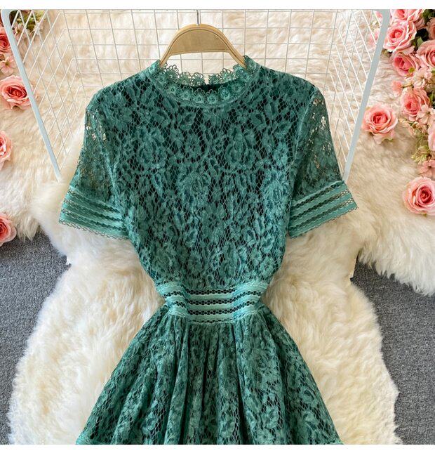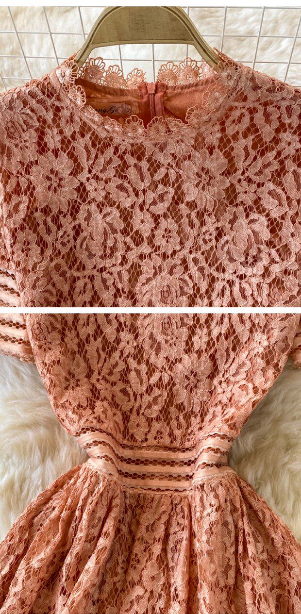 Летнее элитное приталенное кружевное платье с круглым воротником, элегантная мини-юбка, длинная юбка, короткий рукав