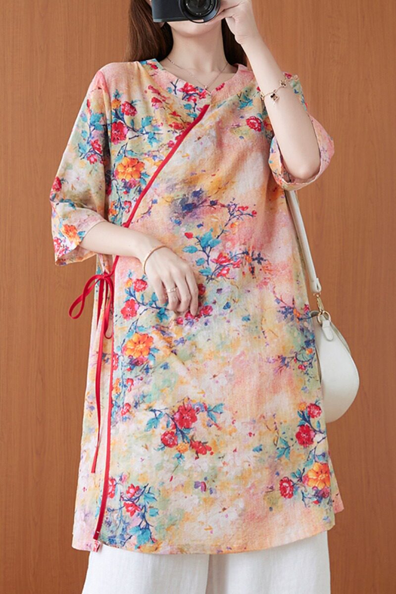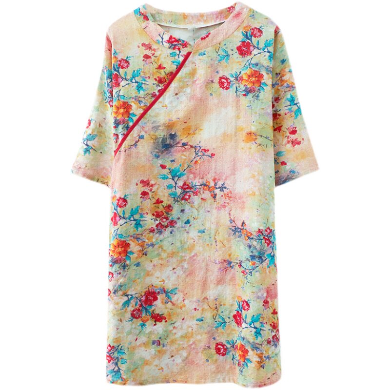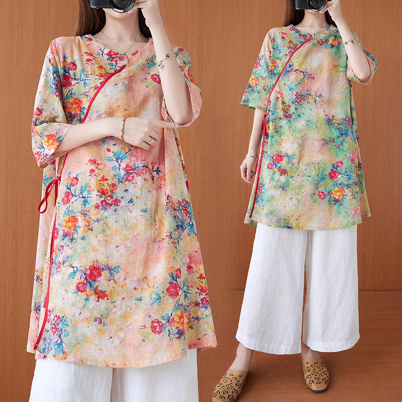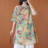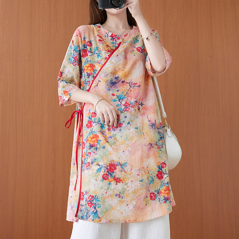 Летнее длинное ханьфу, ретро рубашка, китайский стиль, свободный крой, средней длины, в западном стиле