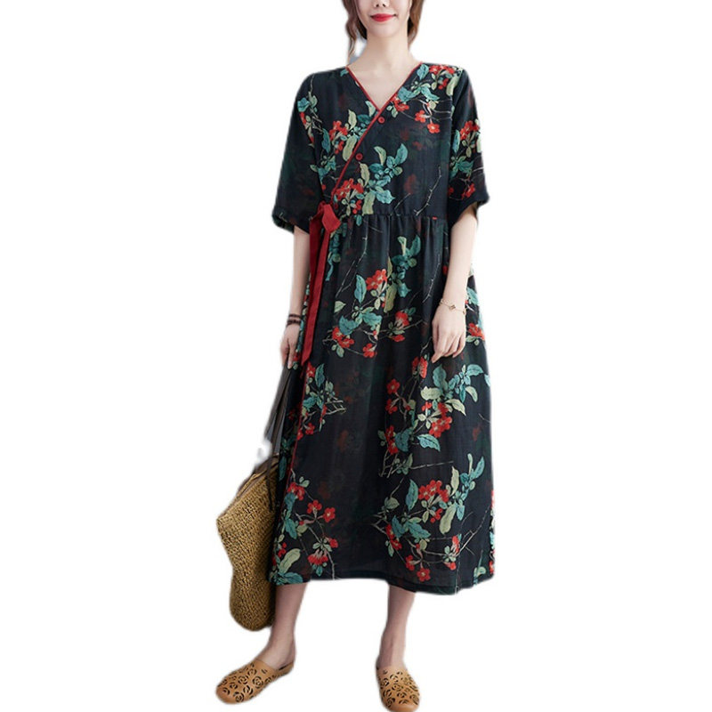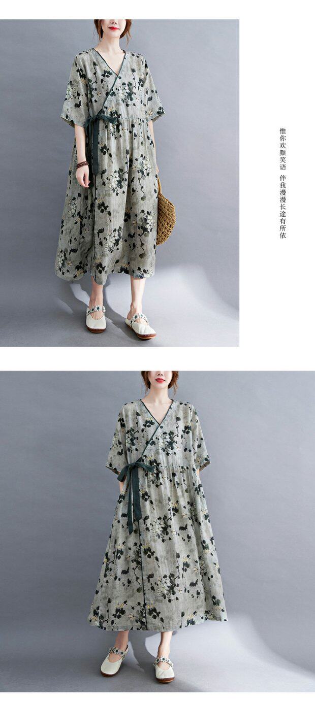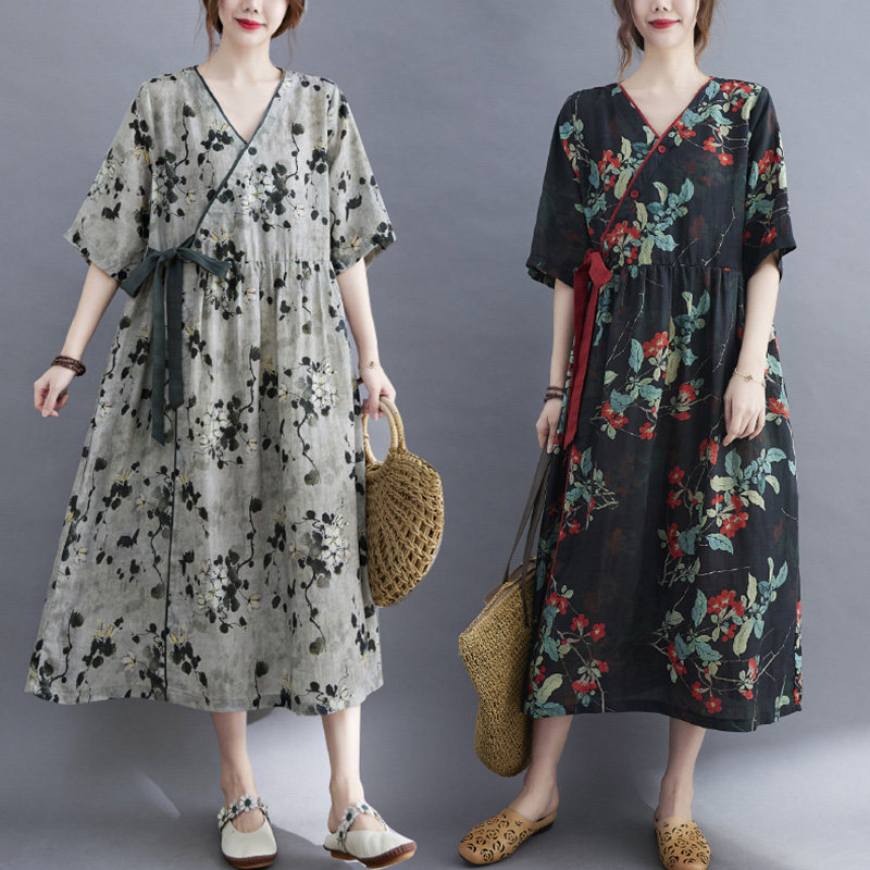 Летняя одежда, платье, приталенный корсет, ретро длинная юбка, сезон 2021, из хлопка и льна, средней длины