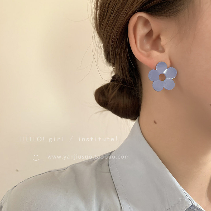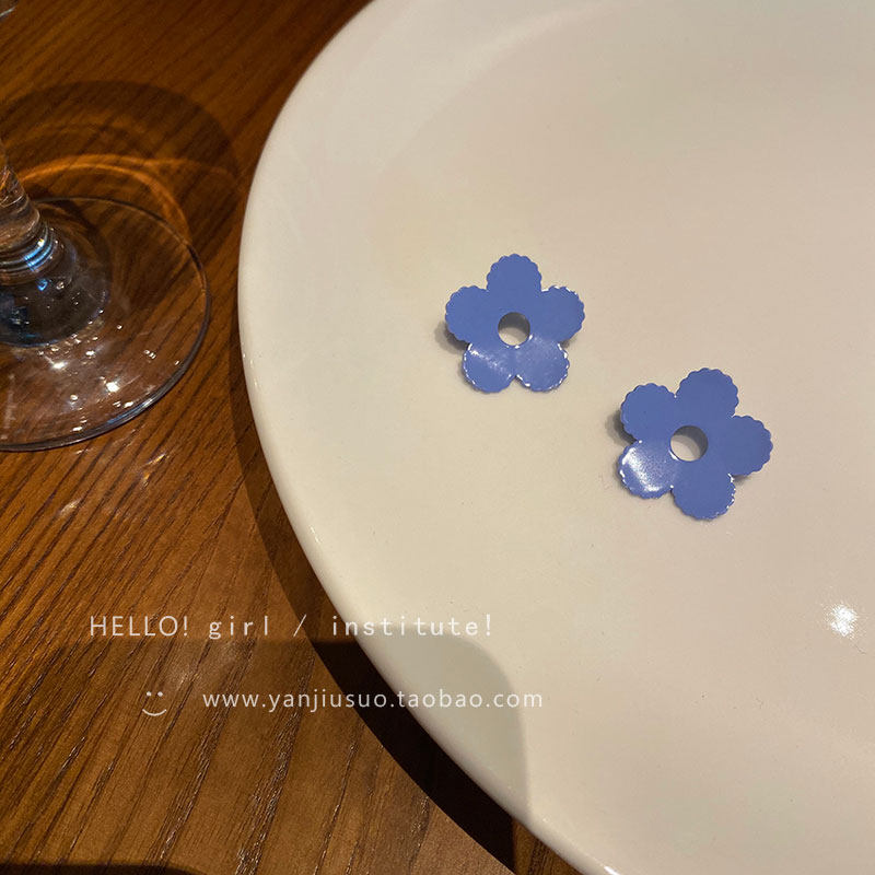 Летние синие небольшие дизайнерские универсальные серьги, в цветочек, тренд сезона, яркий броский стиль, простой и элегантный дизайн