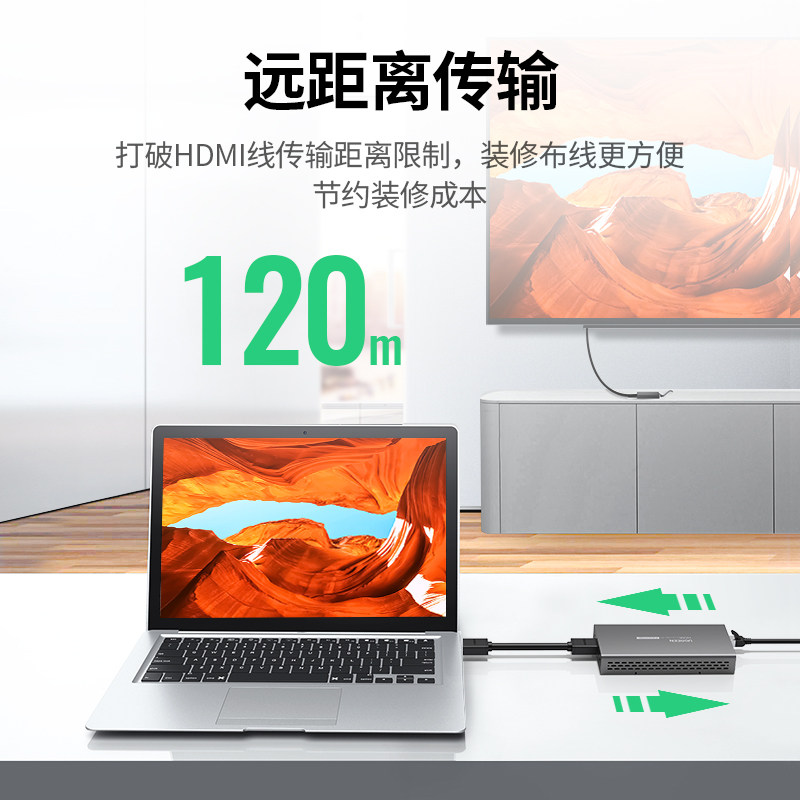 Сеть Green Union HDMI Extender передает 4K120 метров к высокоопределению видеоинженерно -инженерная реле HDMI в RJ45 Усиление сигнала расширения сетевого кабеля.