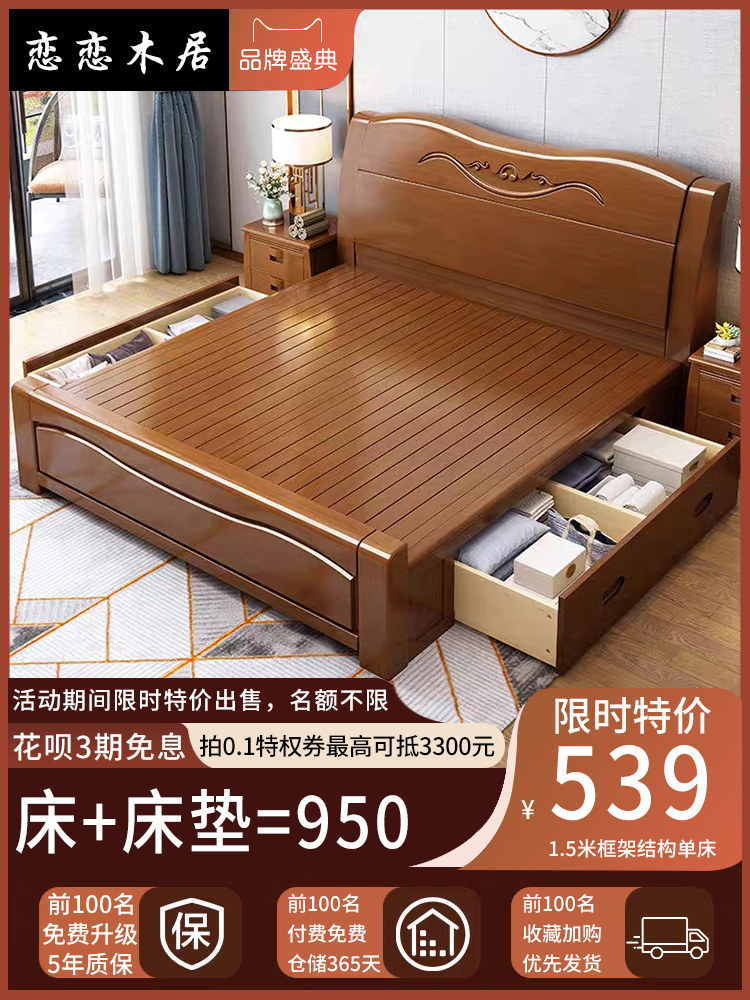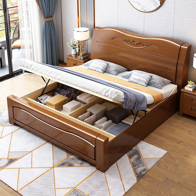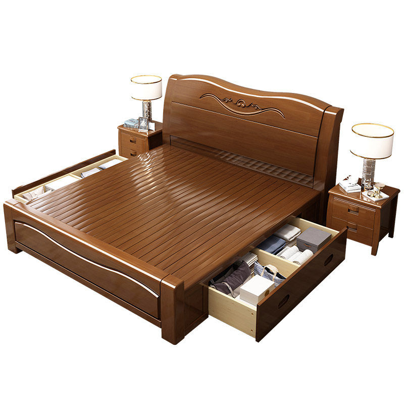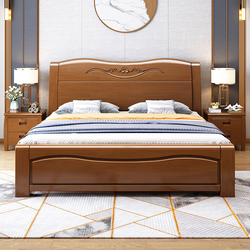 Толстая твердая деревянная кровать двуспальная кровать 1,8 метра современная минималистская 1,5 главная спальня свадебная кровать китайская эконом