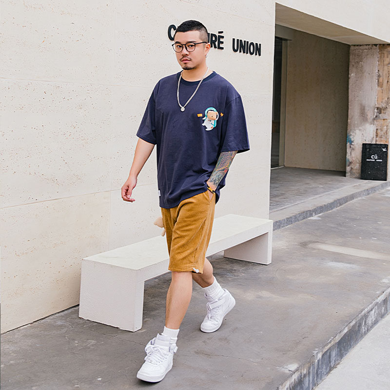Мультяшная хлопковая футболка с круглым воротником, подвеска, большой размер