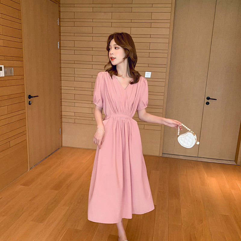 Розовое летнее платье, тонкая юбка для отдыха, коллекция 2021, французский стиль, яркий броский стиль