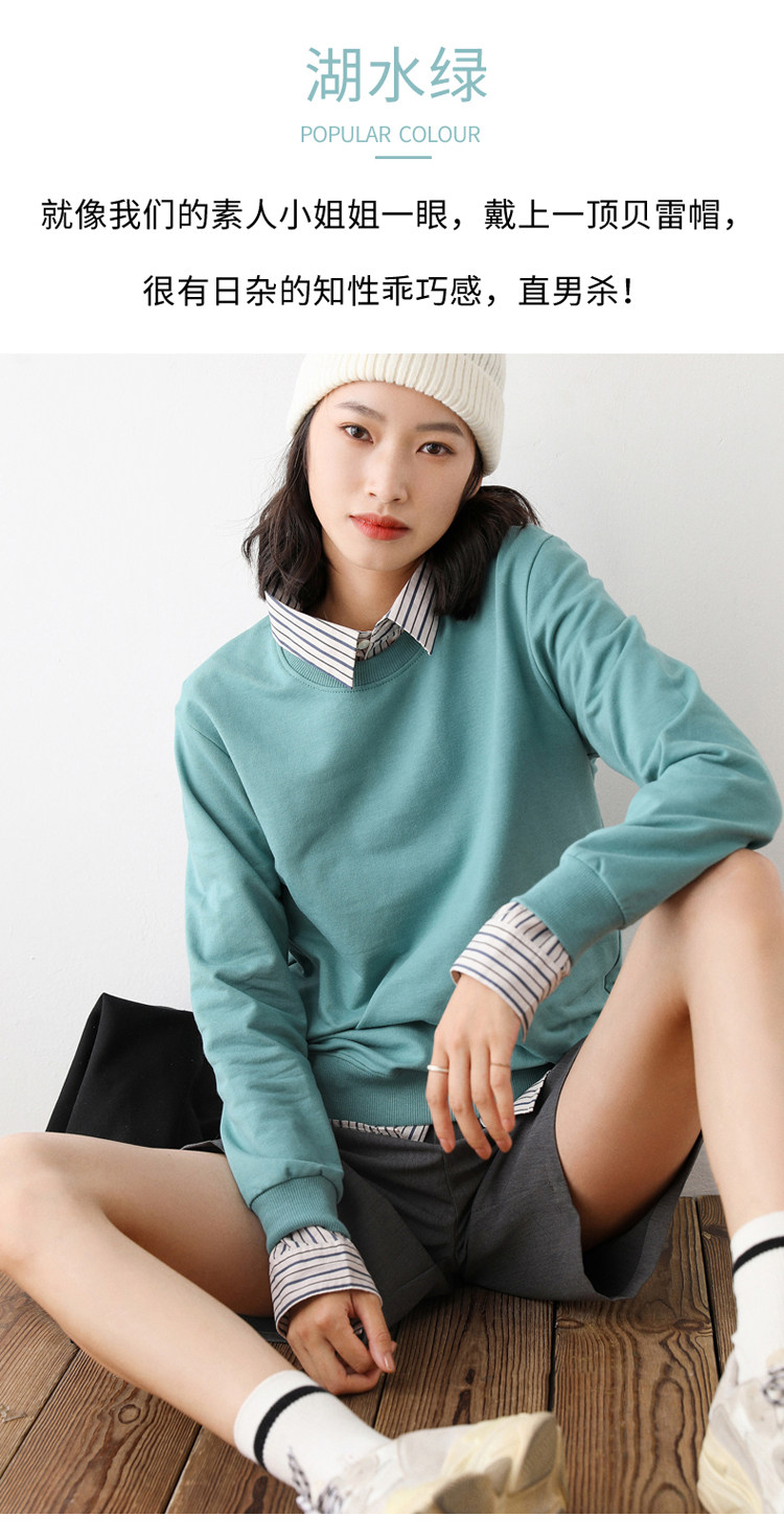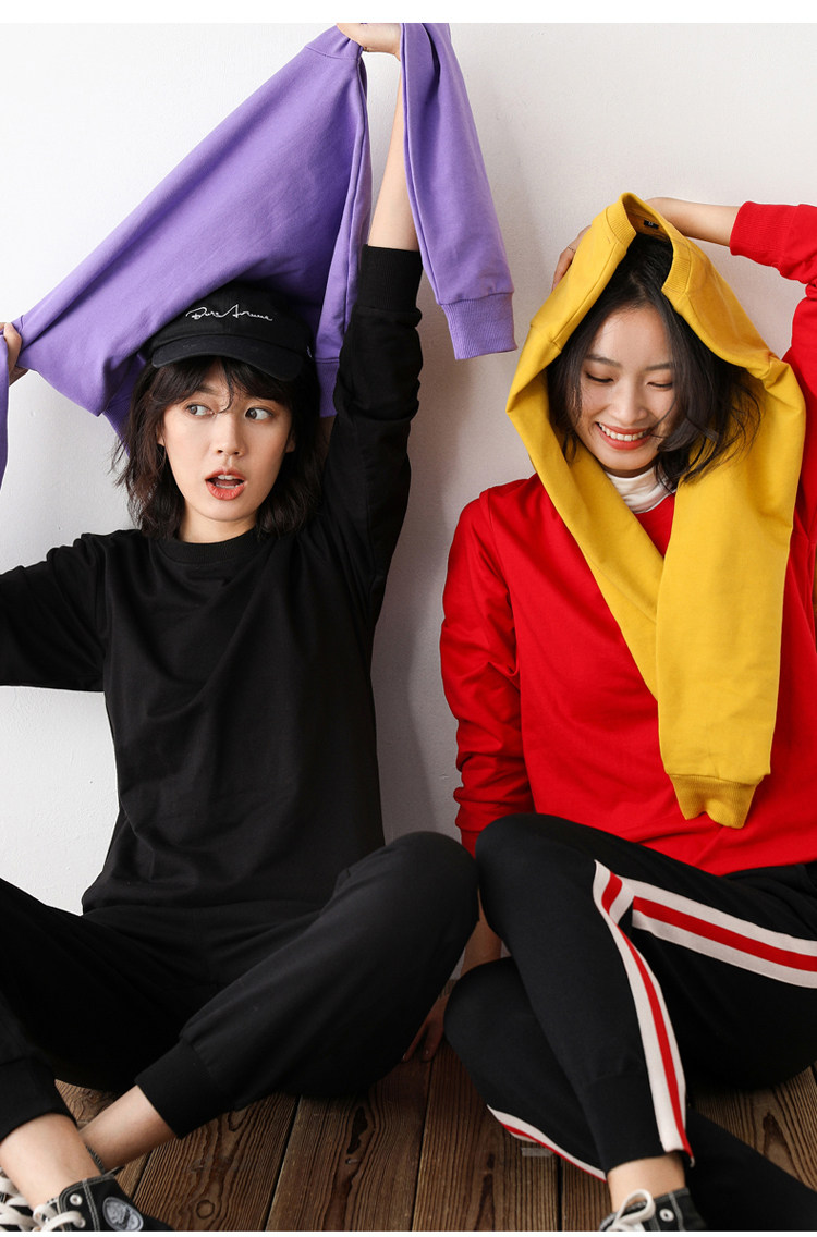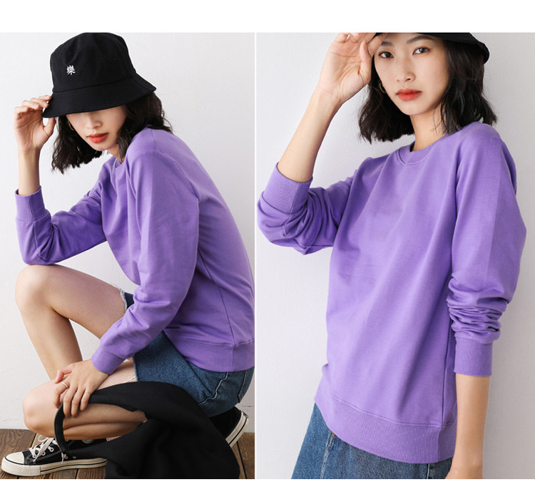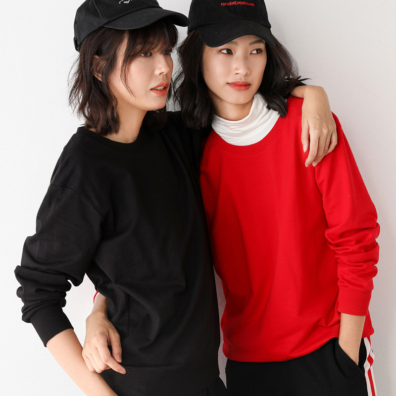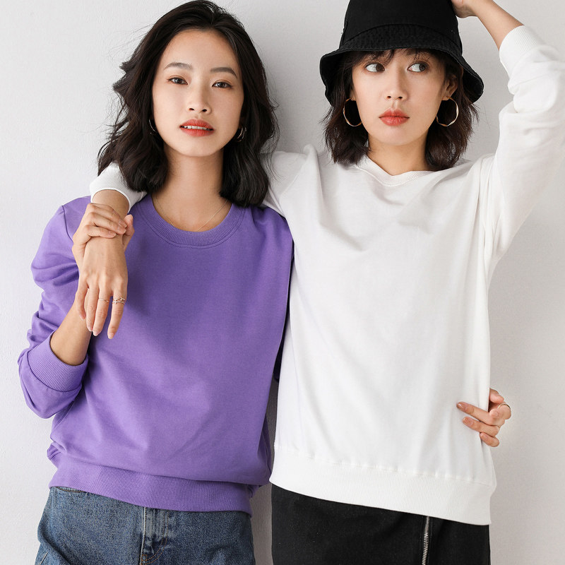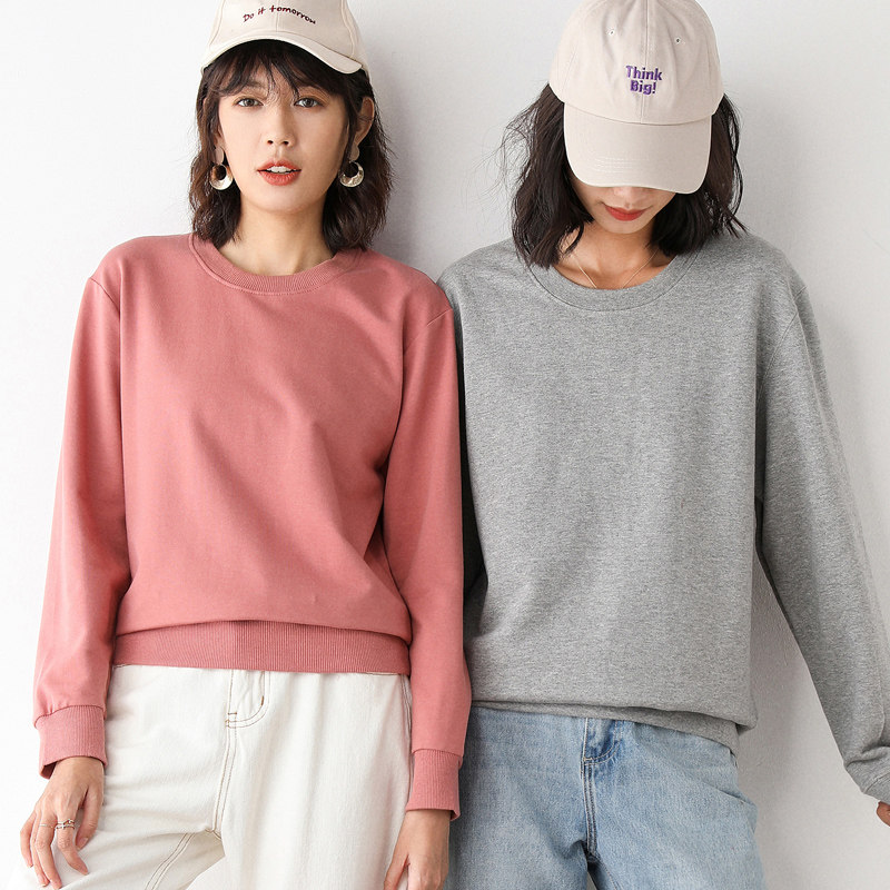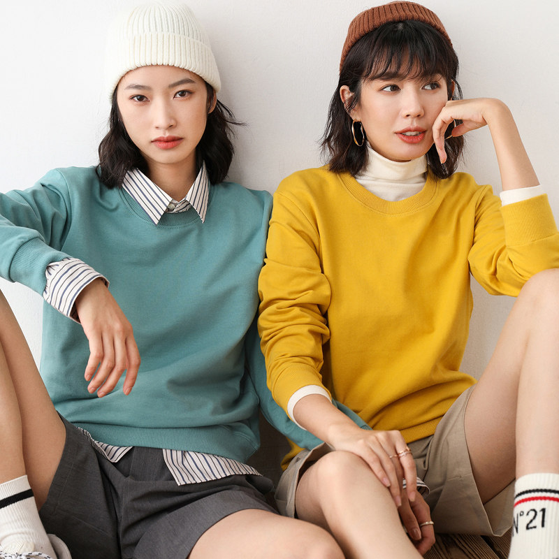 Хлопковая базовая приятная телу толстовка с круглым воротником для отдыха, 100% хлопок, в корейском стиле, для влюбленных