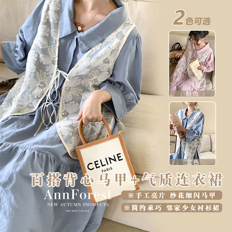 Универсальный артефактный жилет Annie Forest ручной работы с блестками + простое и комфортное свободное платье-рубашка большого размера