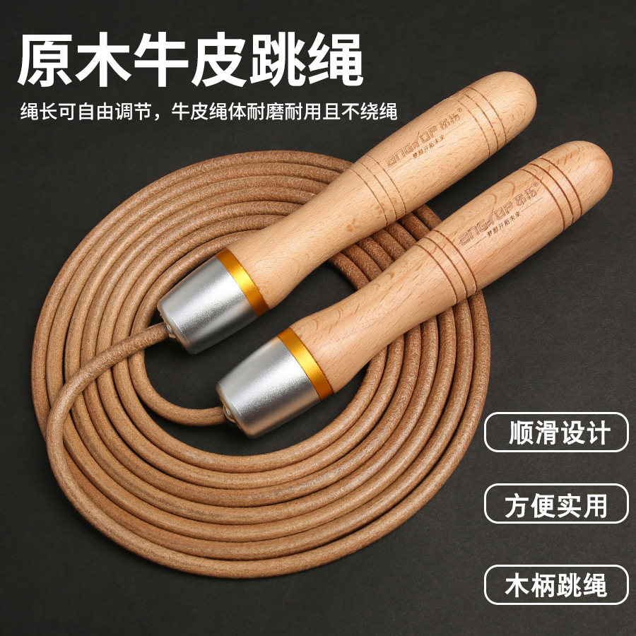 Износостойкая металлическая кожаная регулируемая скакалка для соревнований подходит для мужчин и женщин из натурального дерева, подшипник