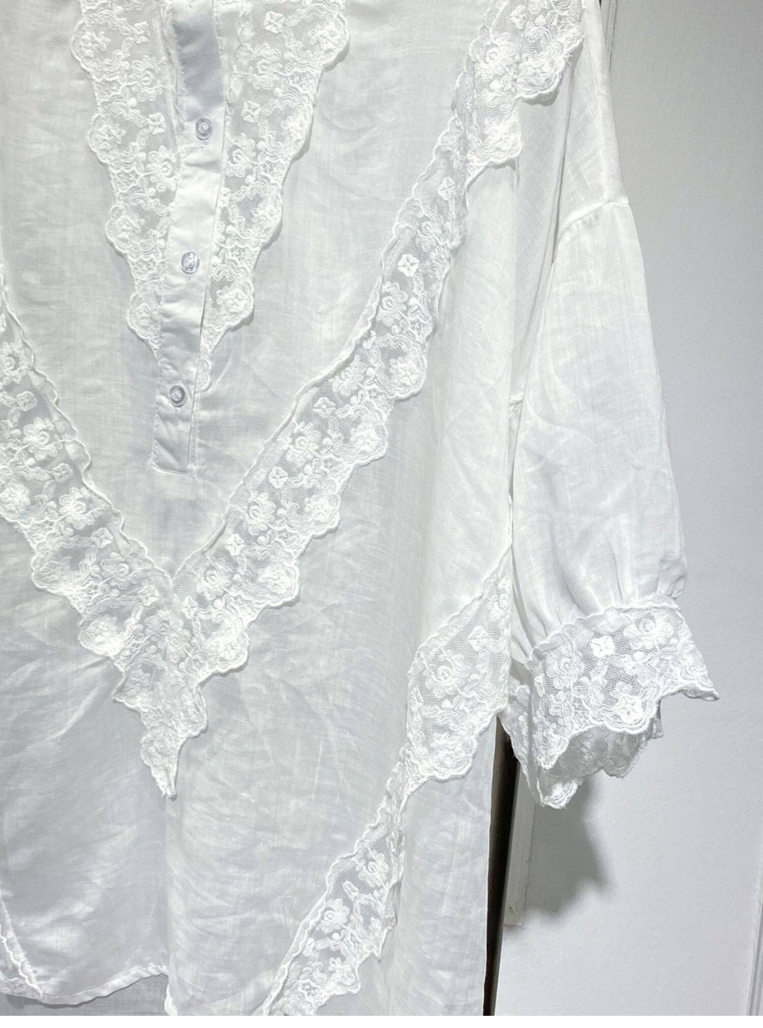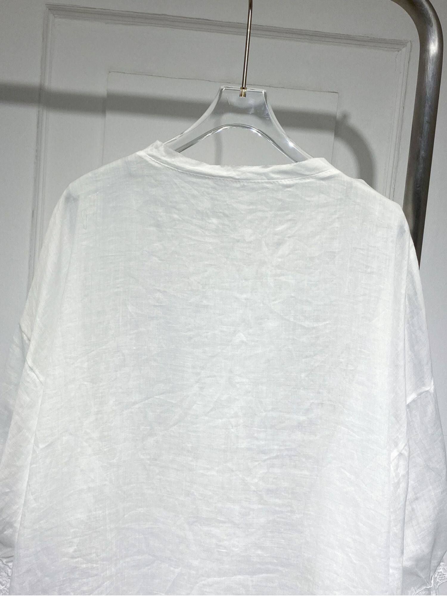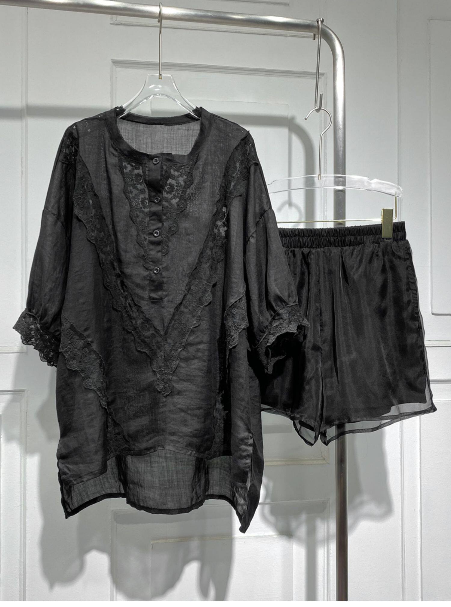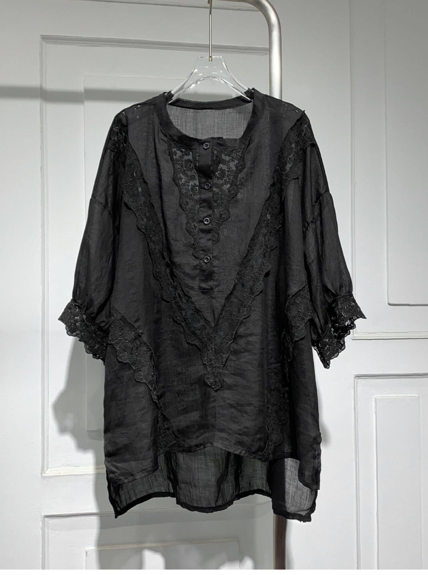 Длинная кружевная летняя рубашка с круглым воротником, средней длины, короткий рукав