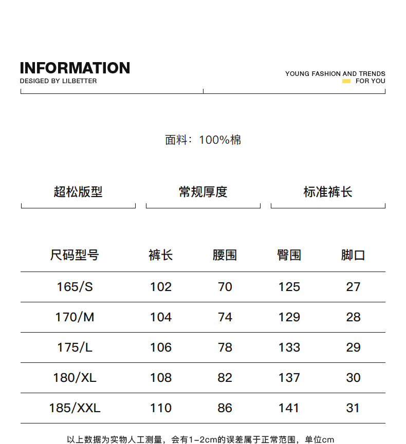 - = 185/XXL 175/L 180/XL