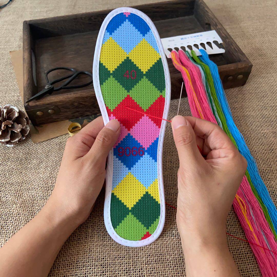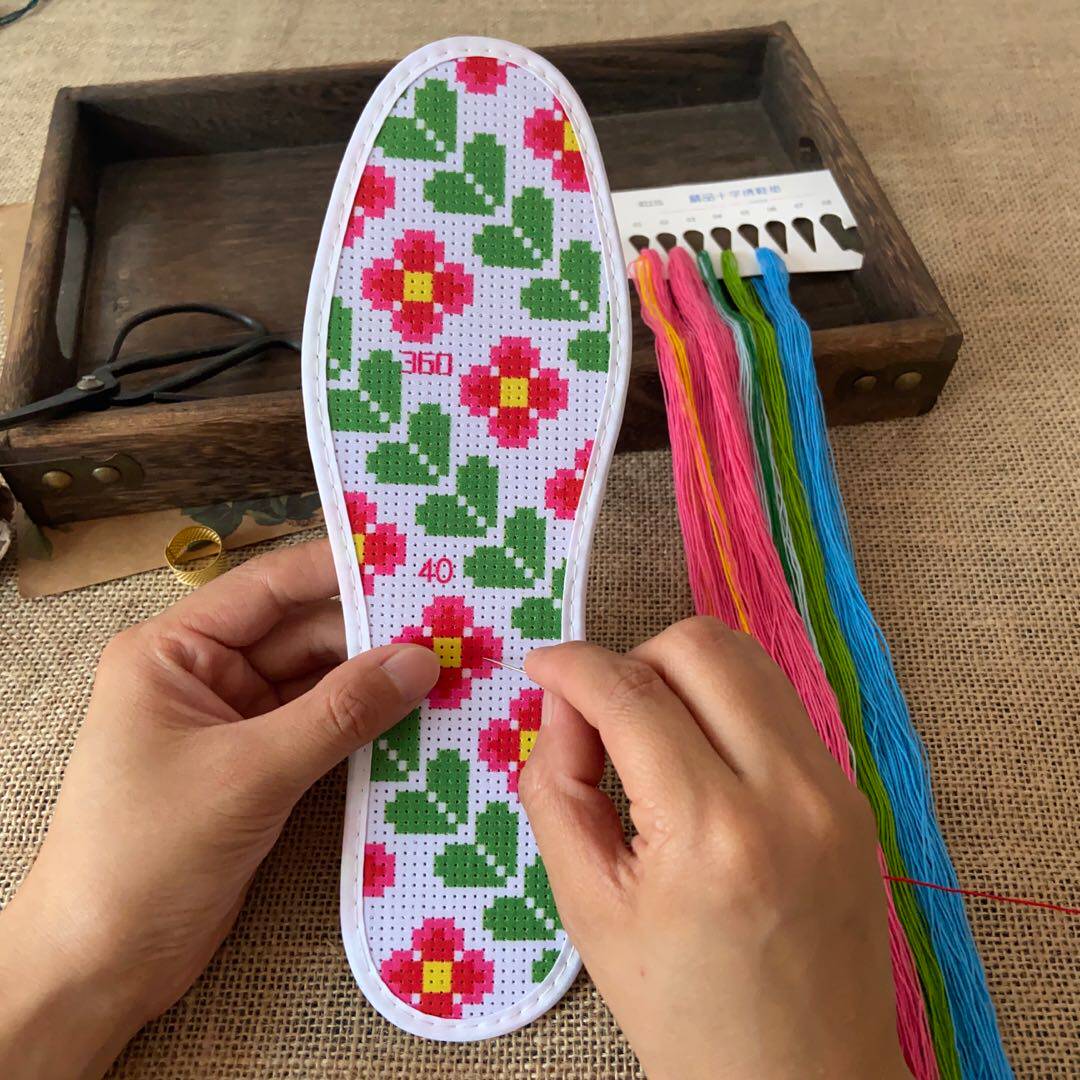 Cross -STITCH стельки 2021 Новые мужчины и женщины чистая ручная хлопковая печать сама вышитые цветы полупрофильные продукты утолщены