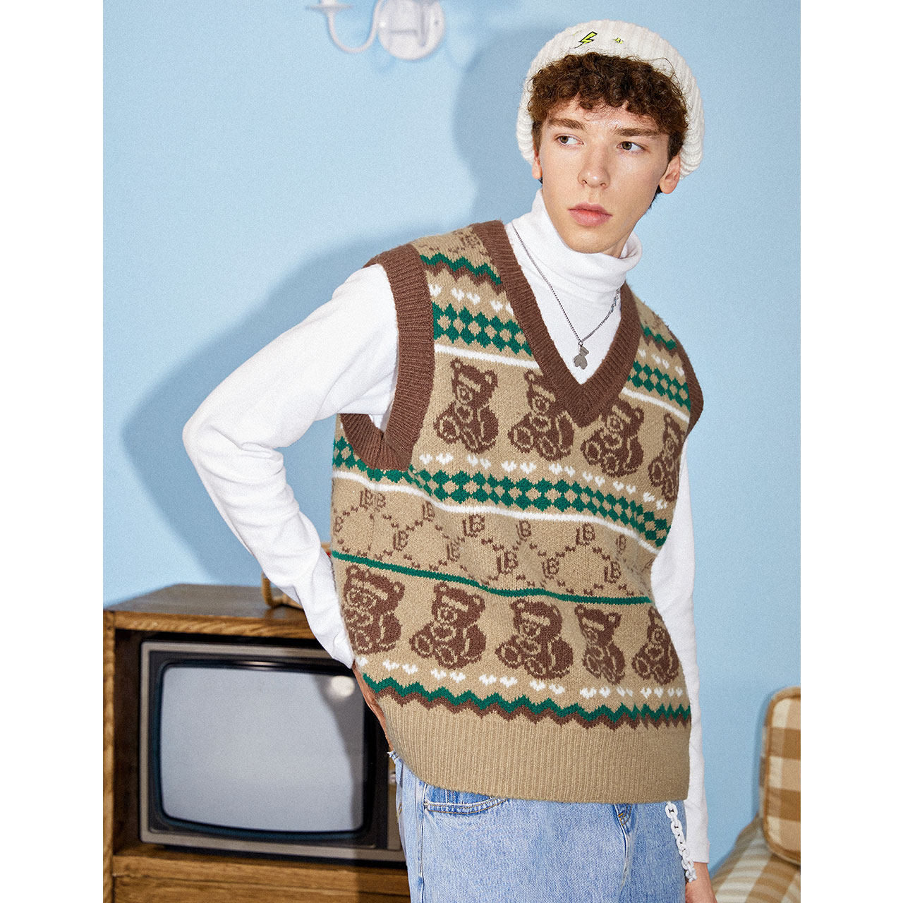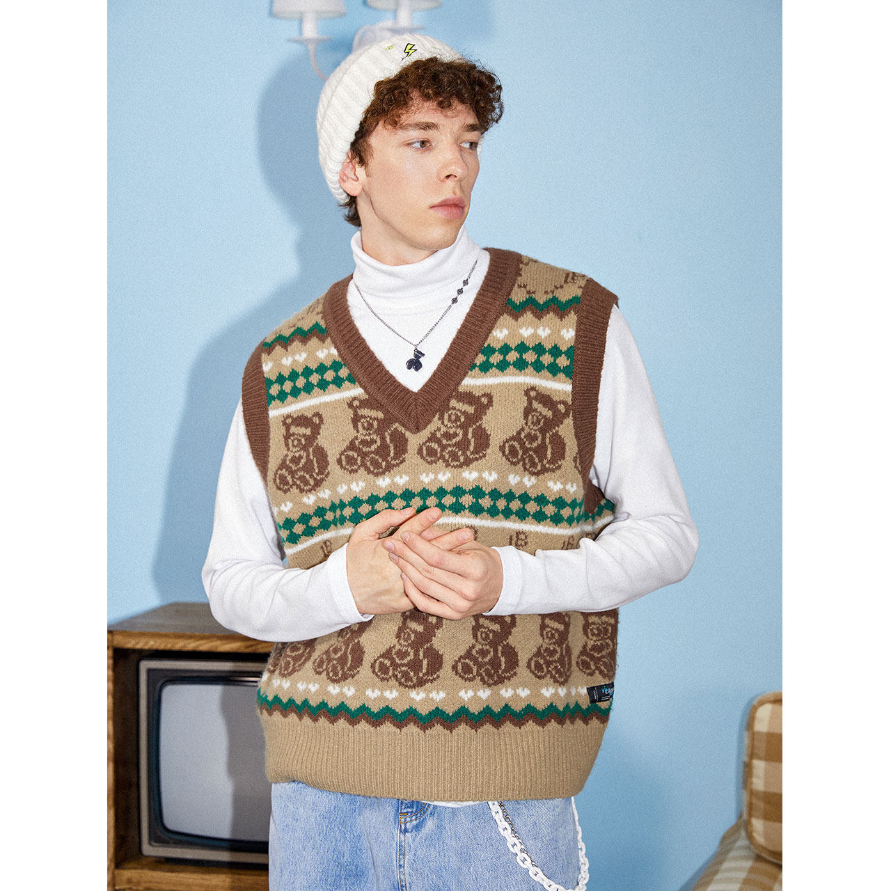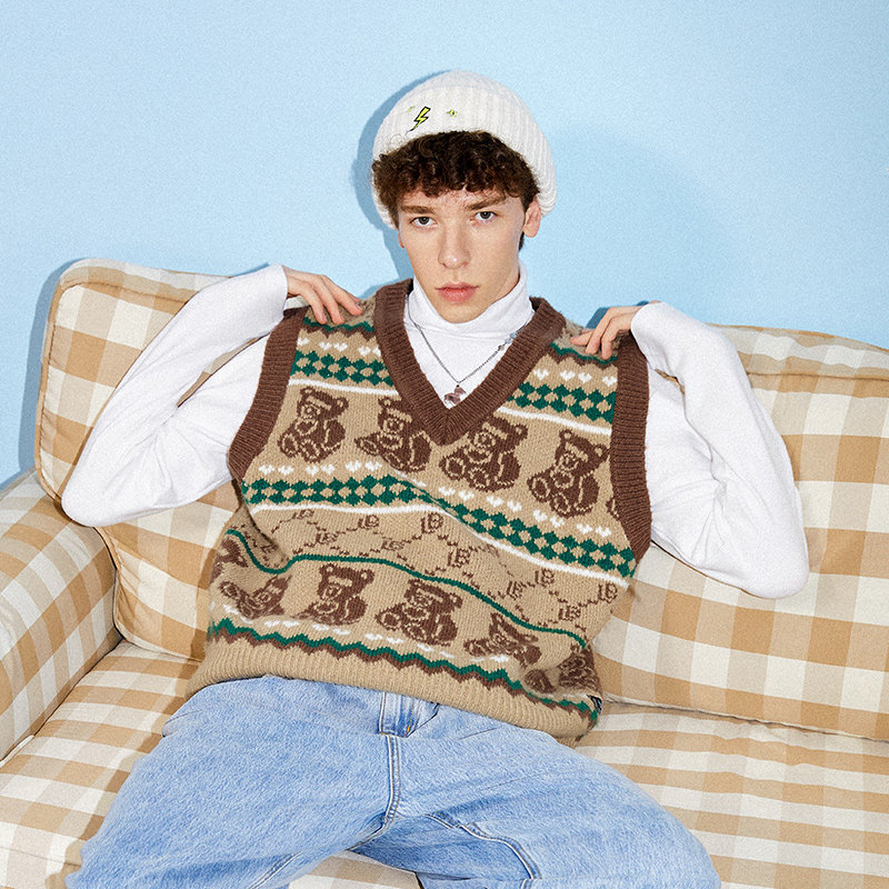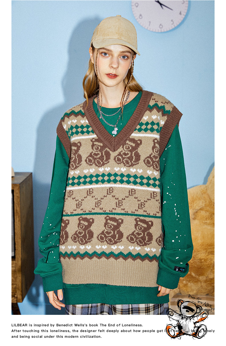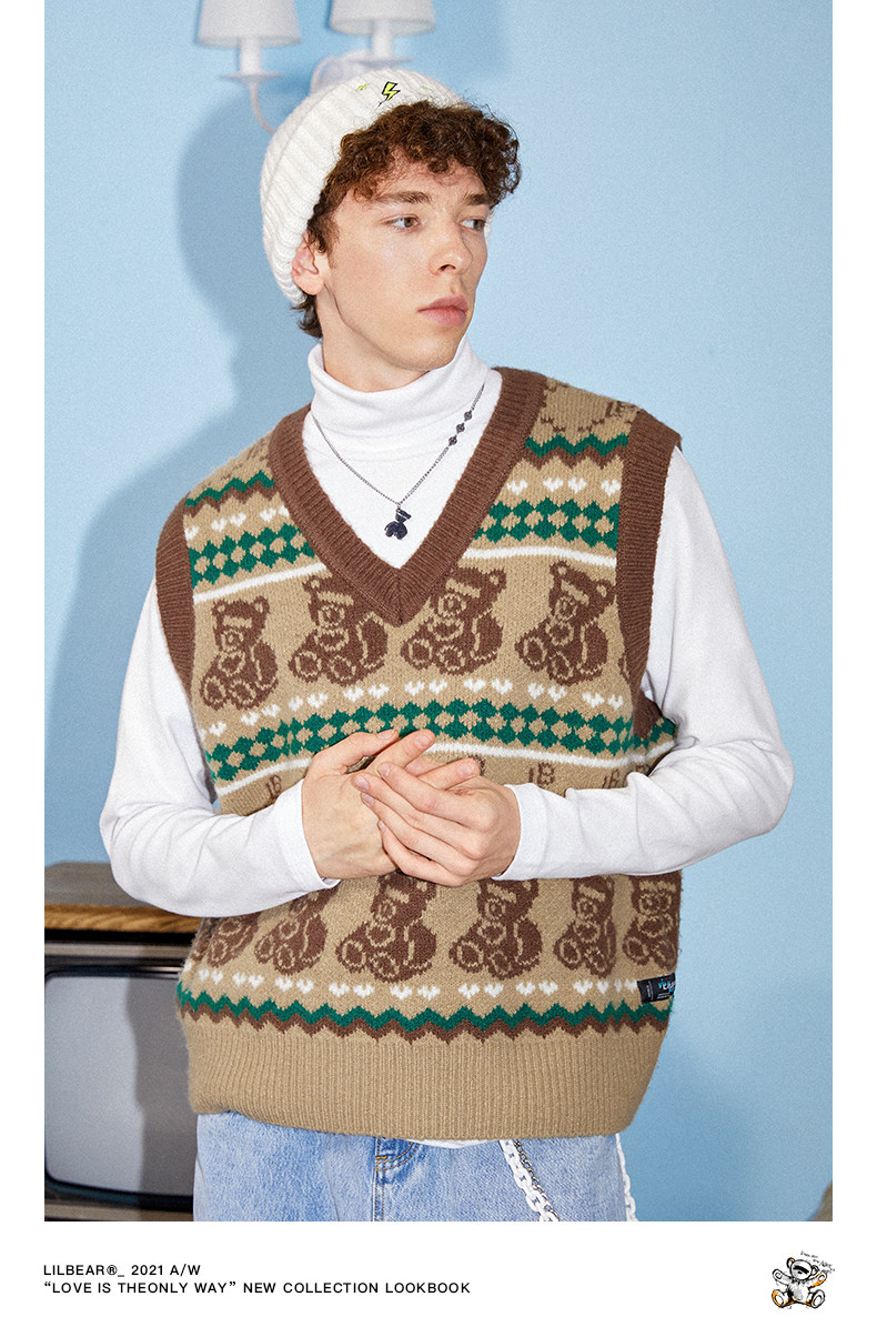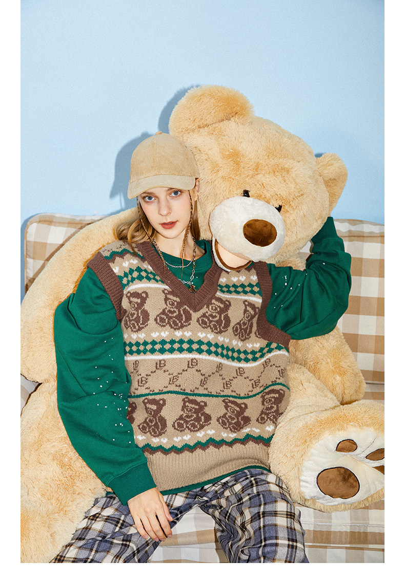 Ретро жилет для отдыха, с медвежатами, европейский стиль, в американском стиле