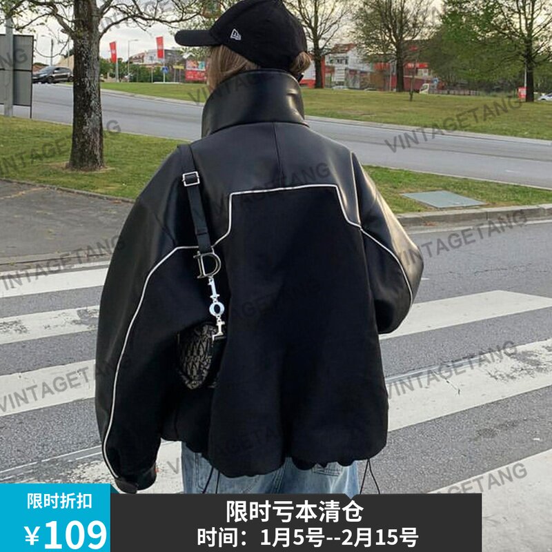 Tide, ретро черная стеганая демисезонная куртка, в американском стиле