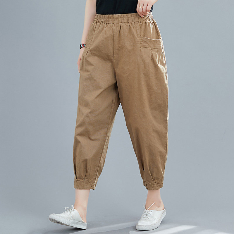 Летние цветные штаны для отдыха, эластичная талия, большой размер, из хлопка и льна