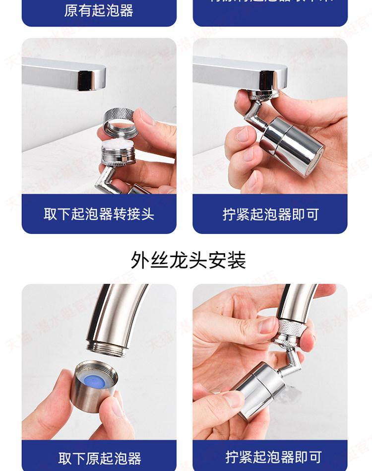 Подводная бассейн с водяным кран Расширенное брызговиц -Проятный многопрофессиональный 720 градусов вращающийся во рту туалетный туалетный туалет артефакт