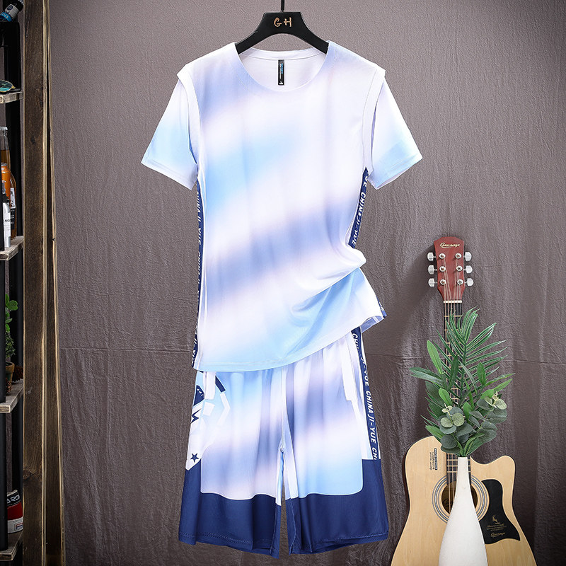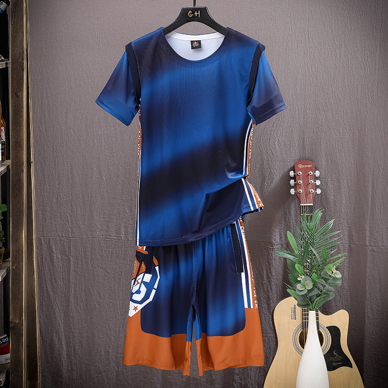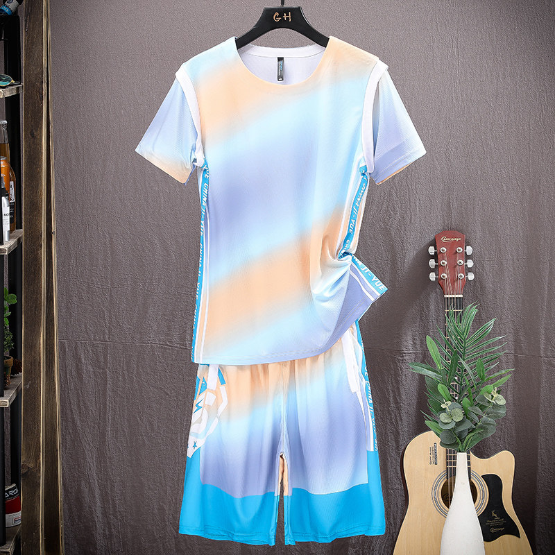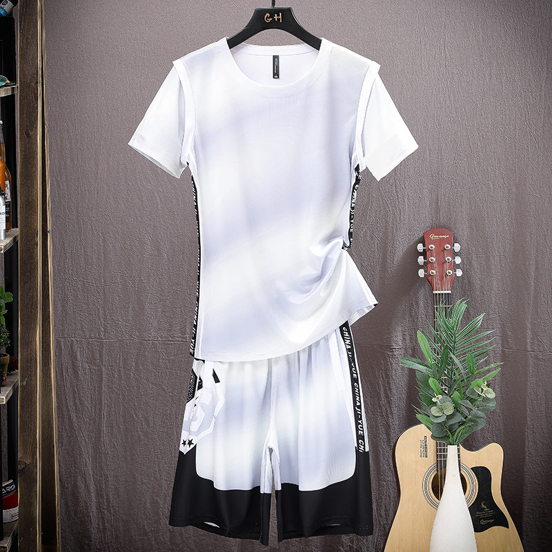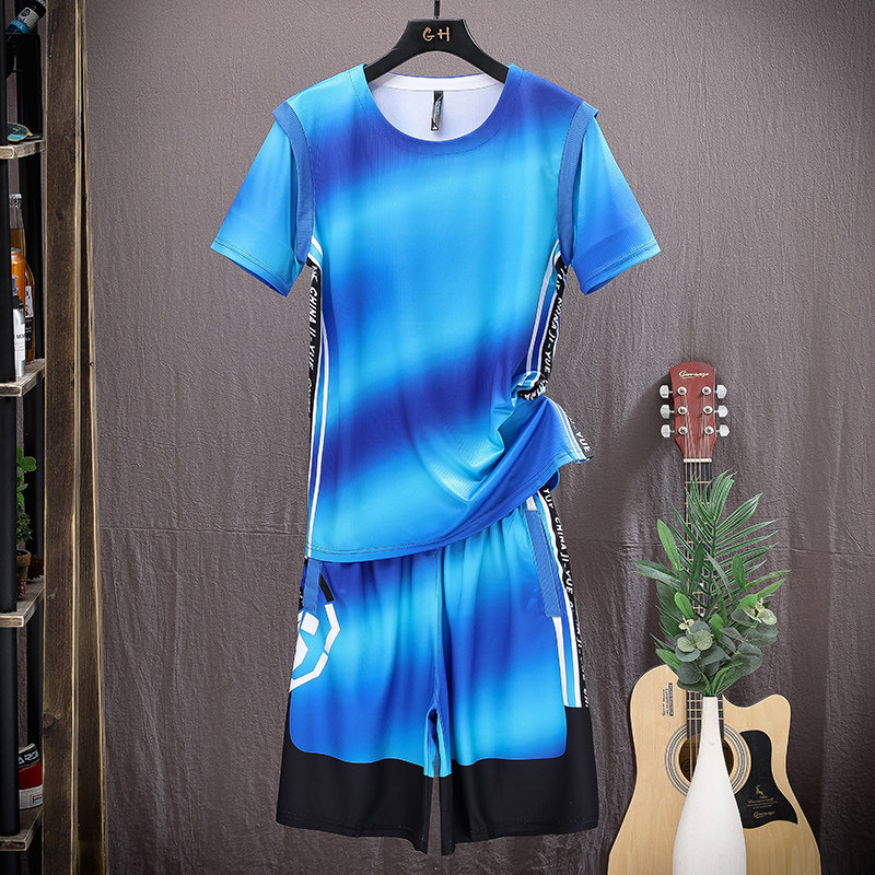 Шелковый комплект, летний спортивный костюм, трендовая футболка с коротким рукавом, шорты, баскетбольная футбольная форма, для бега