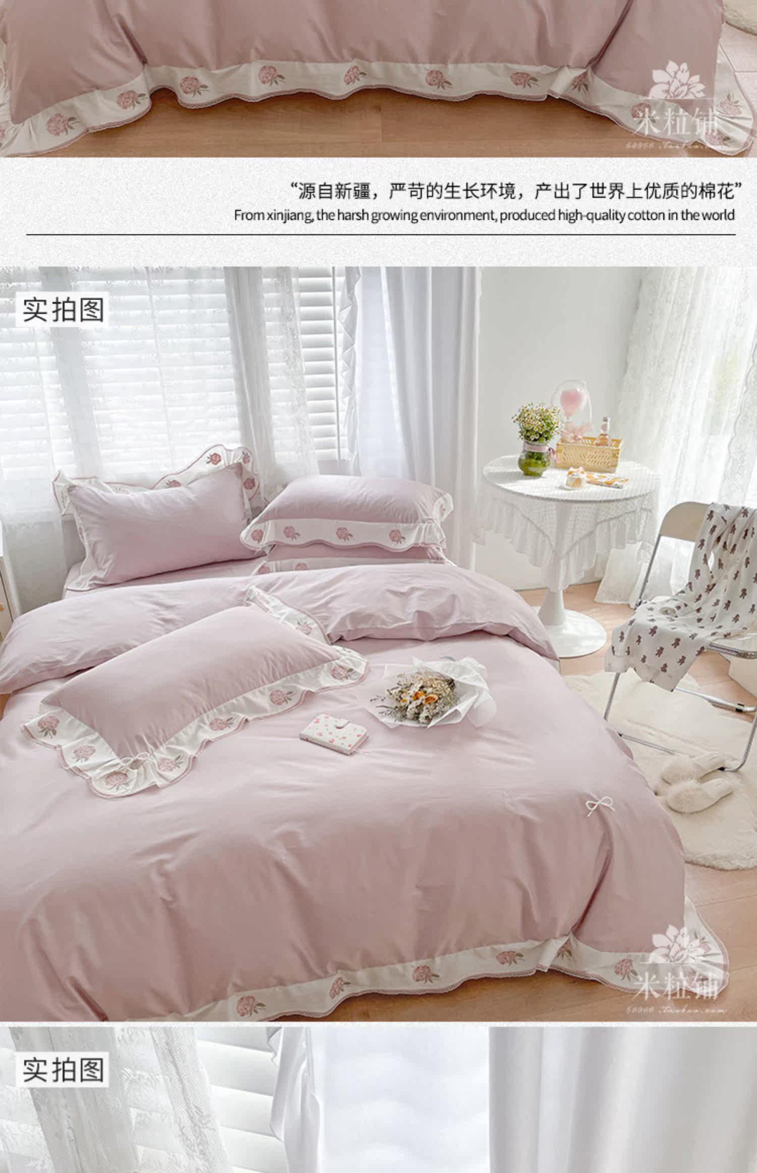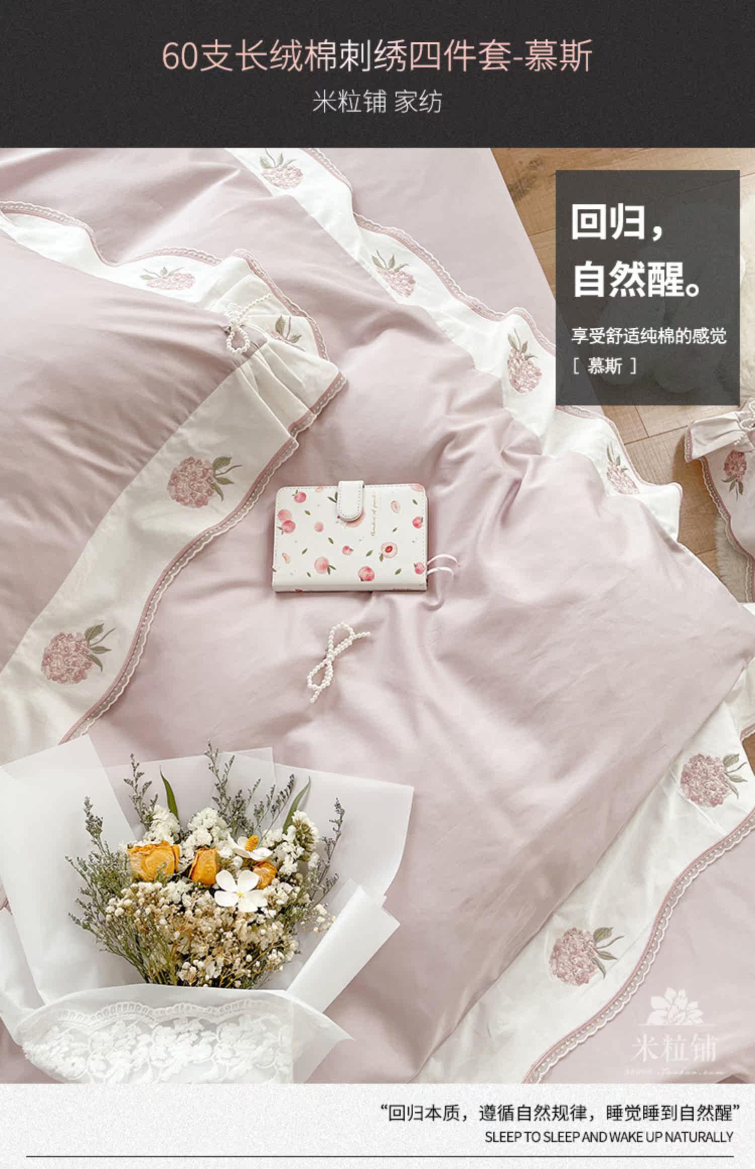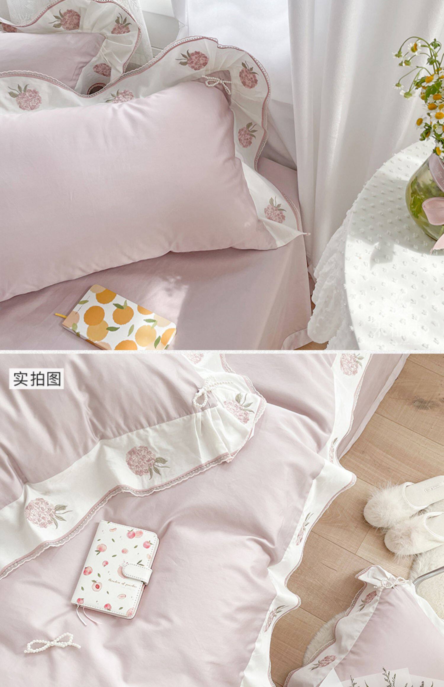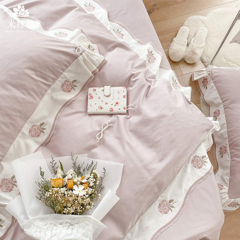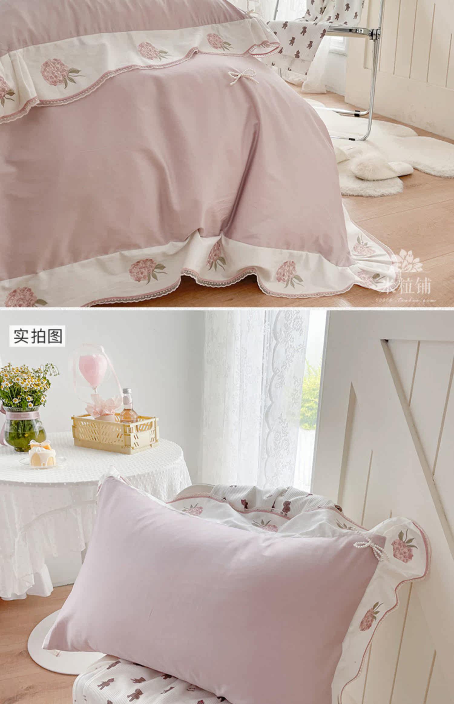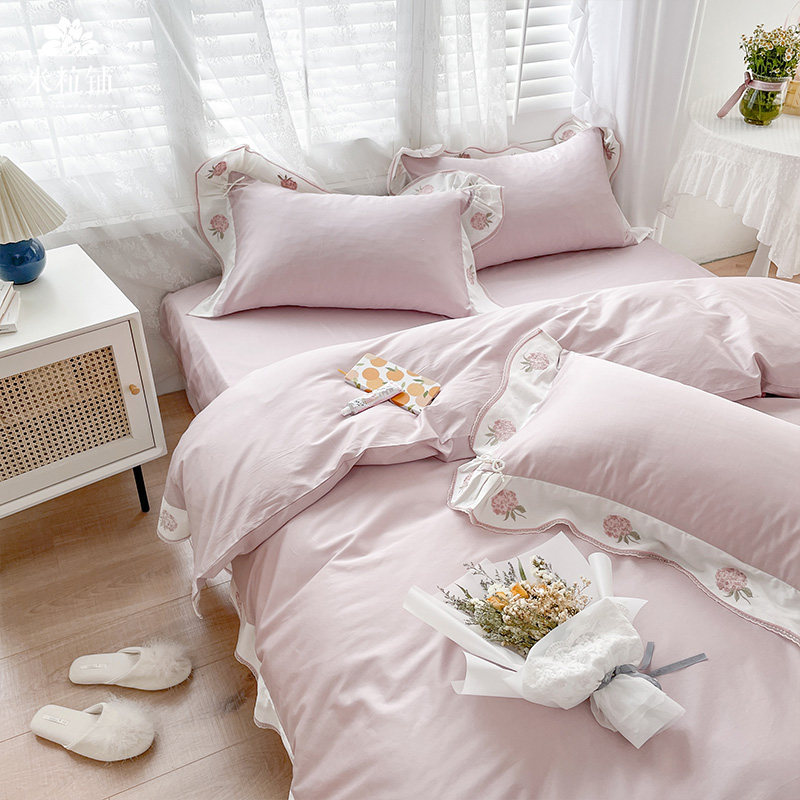 Клубника, хлопковый комплект, хлопковое одеяло, корейский пододеяльник, покрывало, с вышивкой, 60 шт, 4 предмета