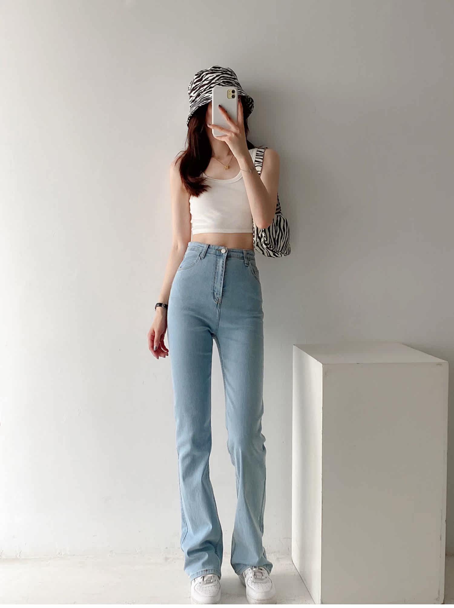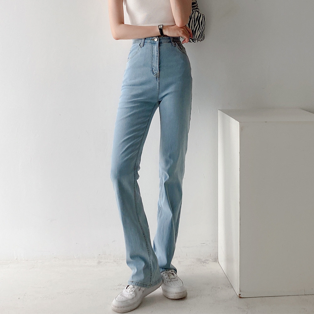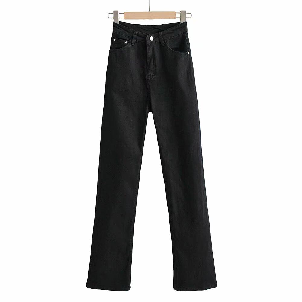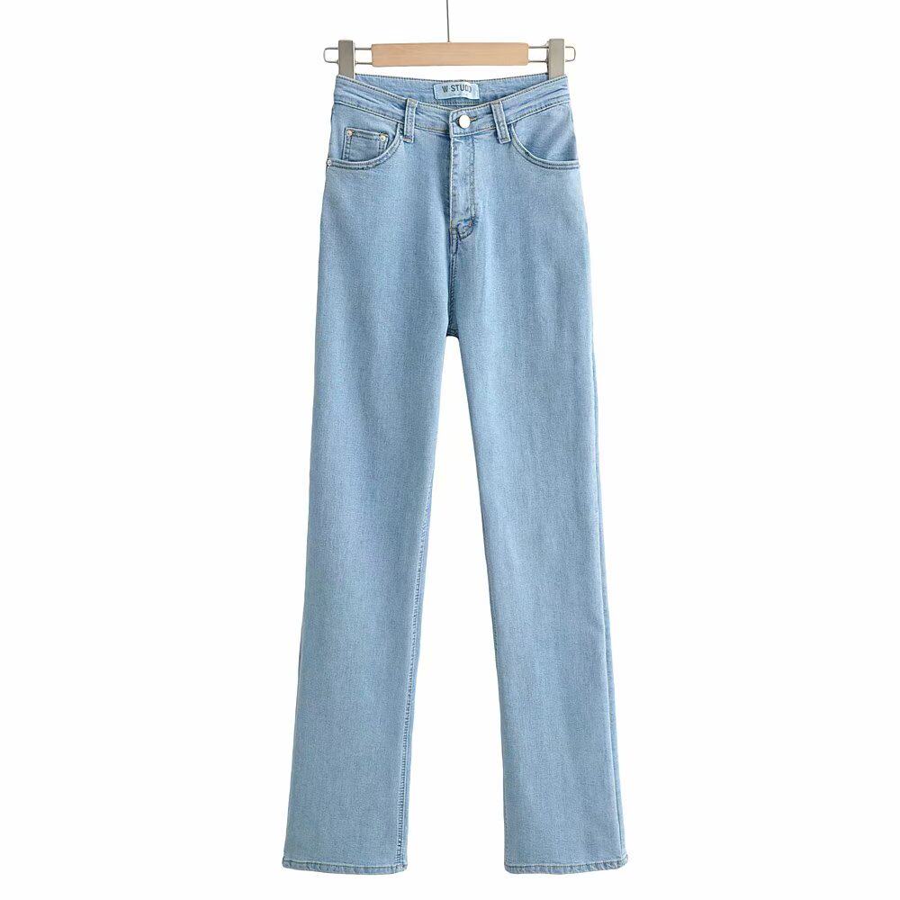 Эластичные приталенные длинные джинсовые штаны для отдыха, свободный прямой крой, высокая талия, с акцентом на бедрах