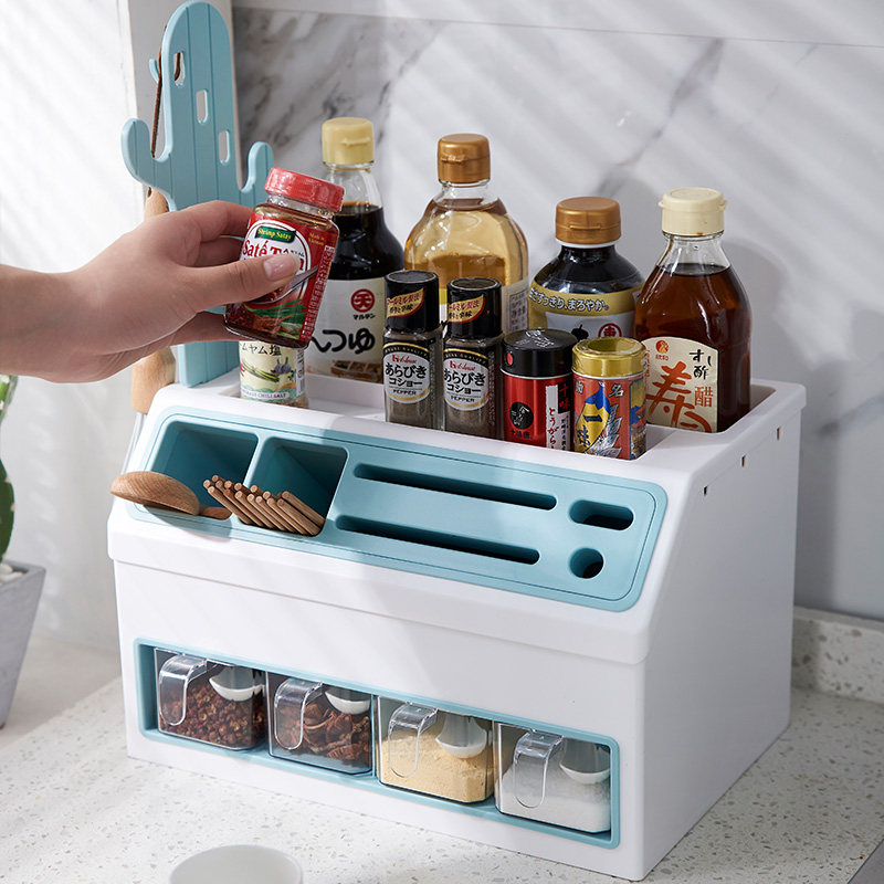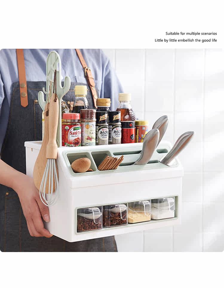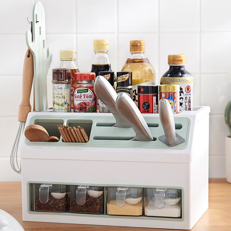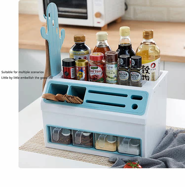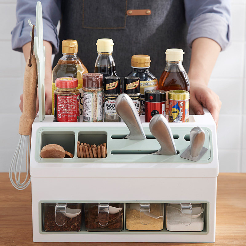 - Двойной стойку для приправы с двойным льдом и синим цветом [держатель ножа + палочки для еды и хранение ложки]