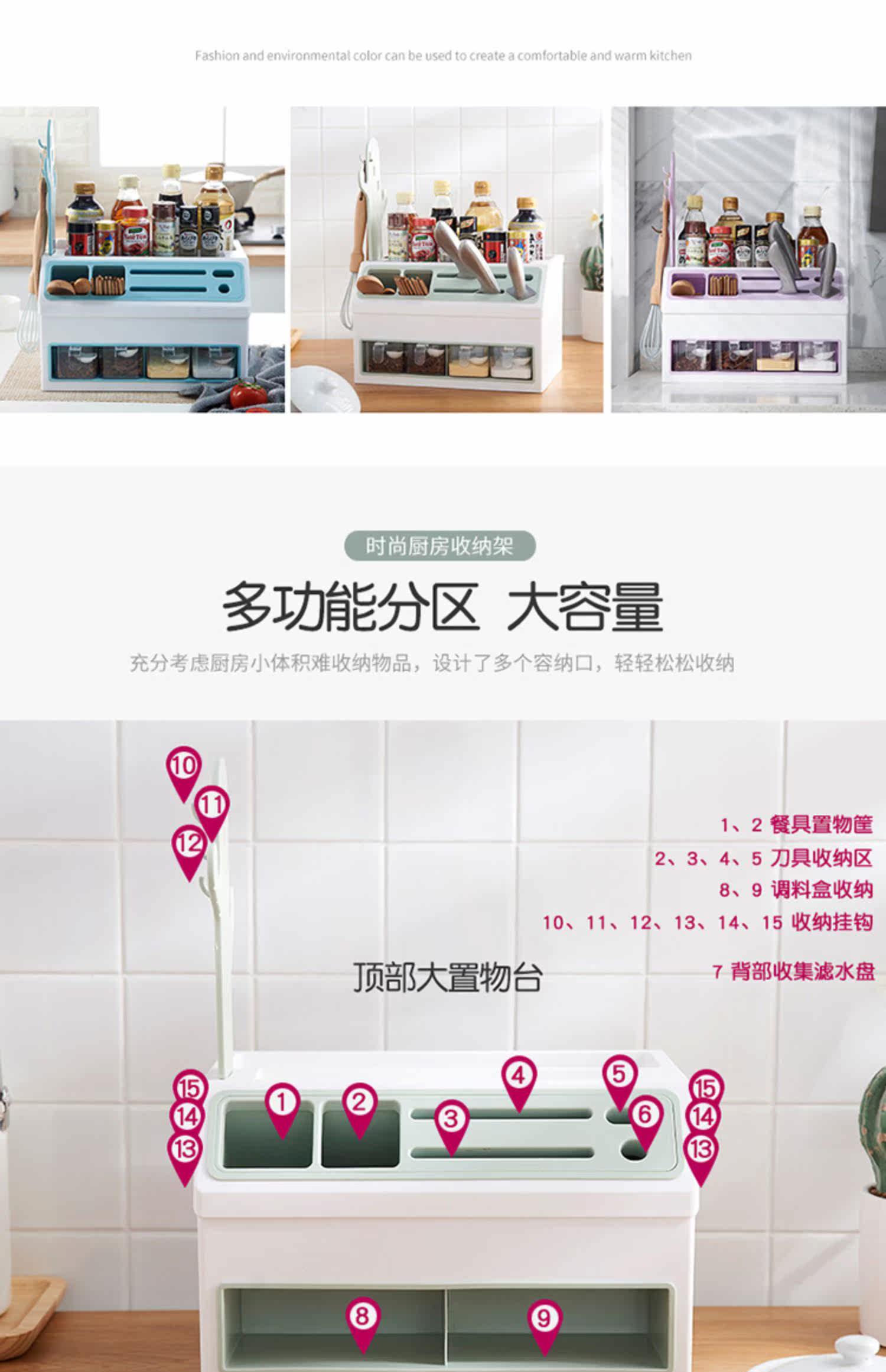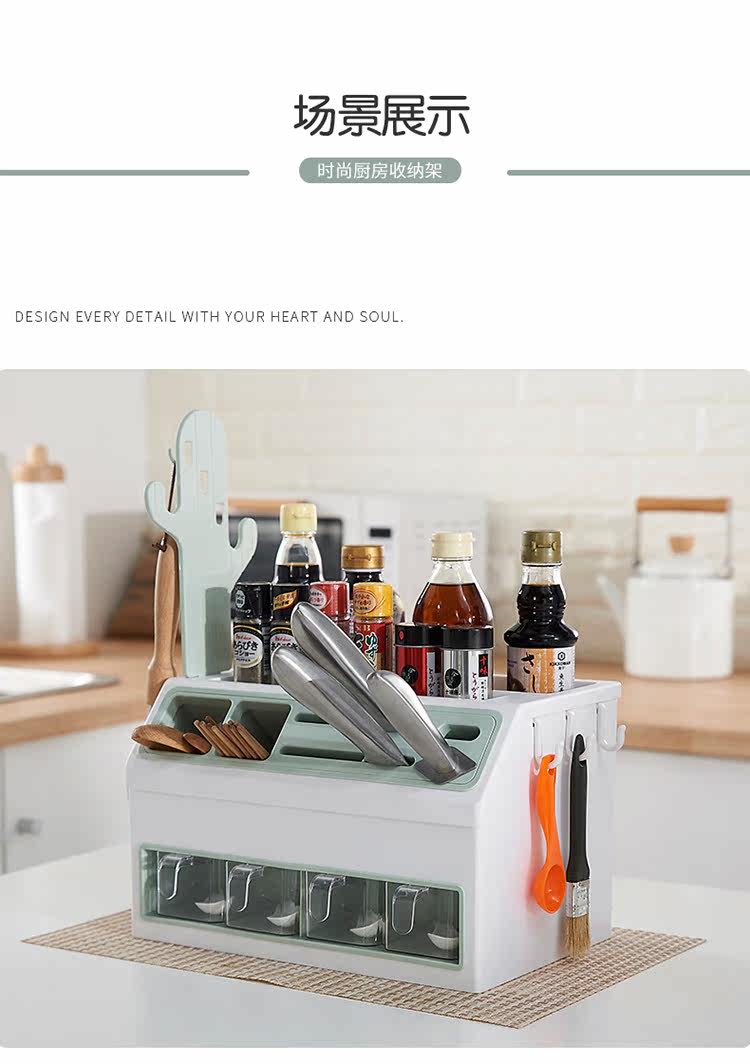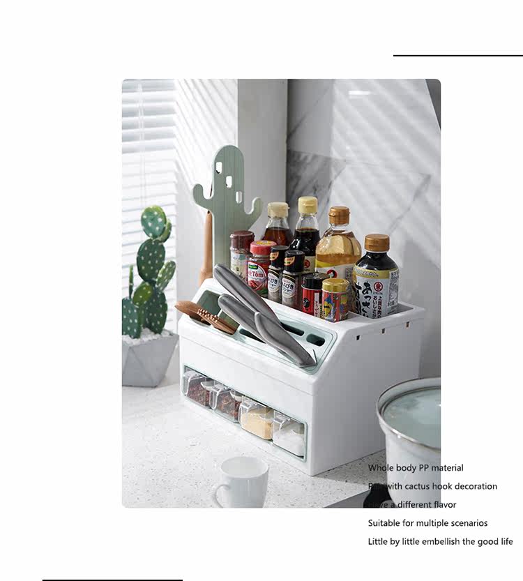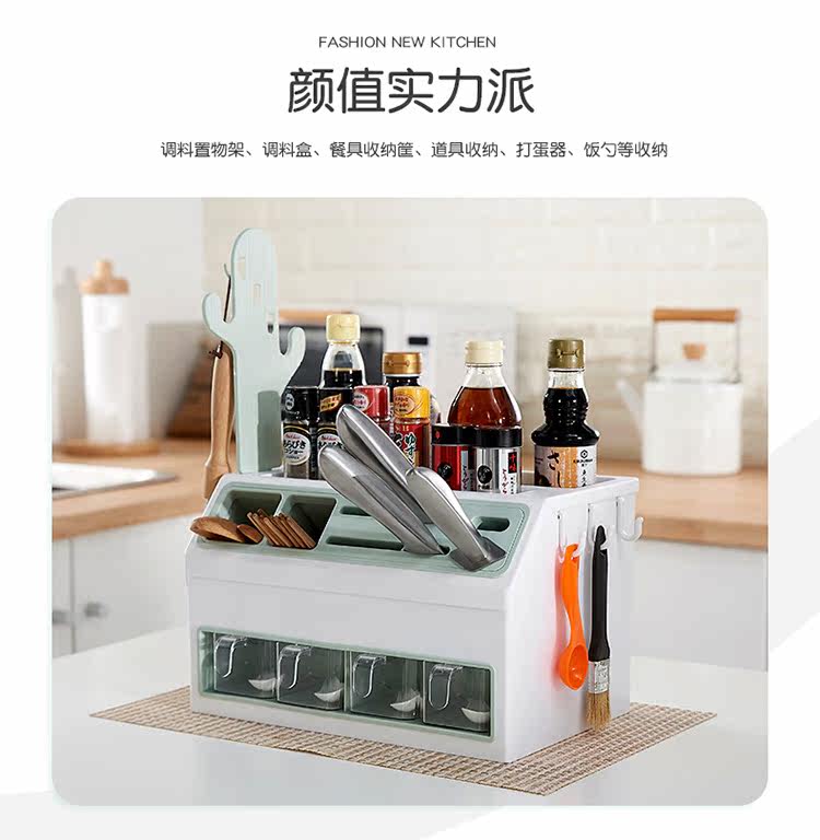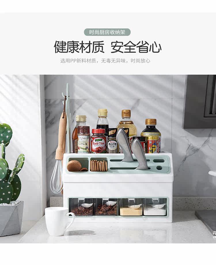 - Двойной стойку для приправы с двойным льдом и синим цветом [держатель ножа + палочки для еды и хранение ложки]
