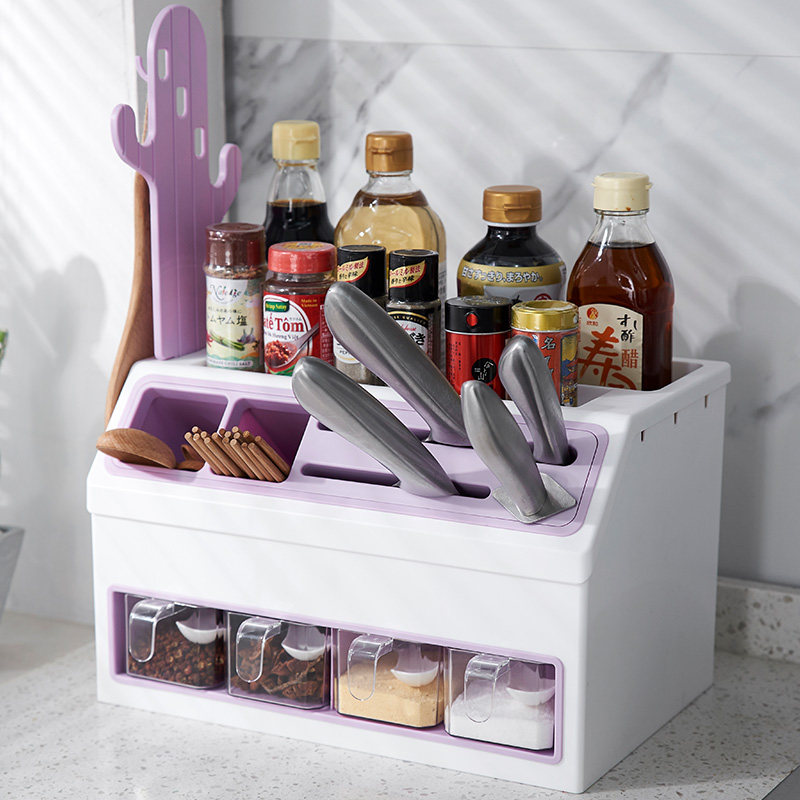 - Двойная стойка с двойной лилаком пурпурной приправы [держатель ножа + хранение палочки для еды]]