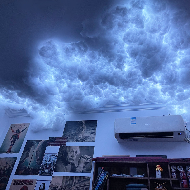 Лампа грозового облака хлопковое молниеносное облако внутреннее освещение украшение лампа со сценарием убийство спецэффекты комната спальня крыша гром и молния темное облако искусство поделки атмосфера стена творческий бар технология смысл интернет знаменитость