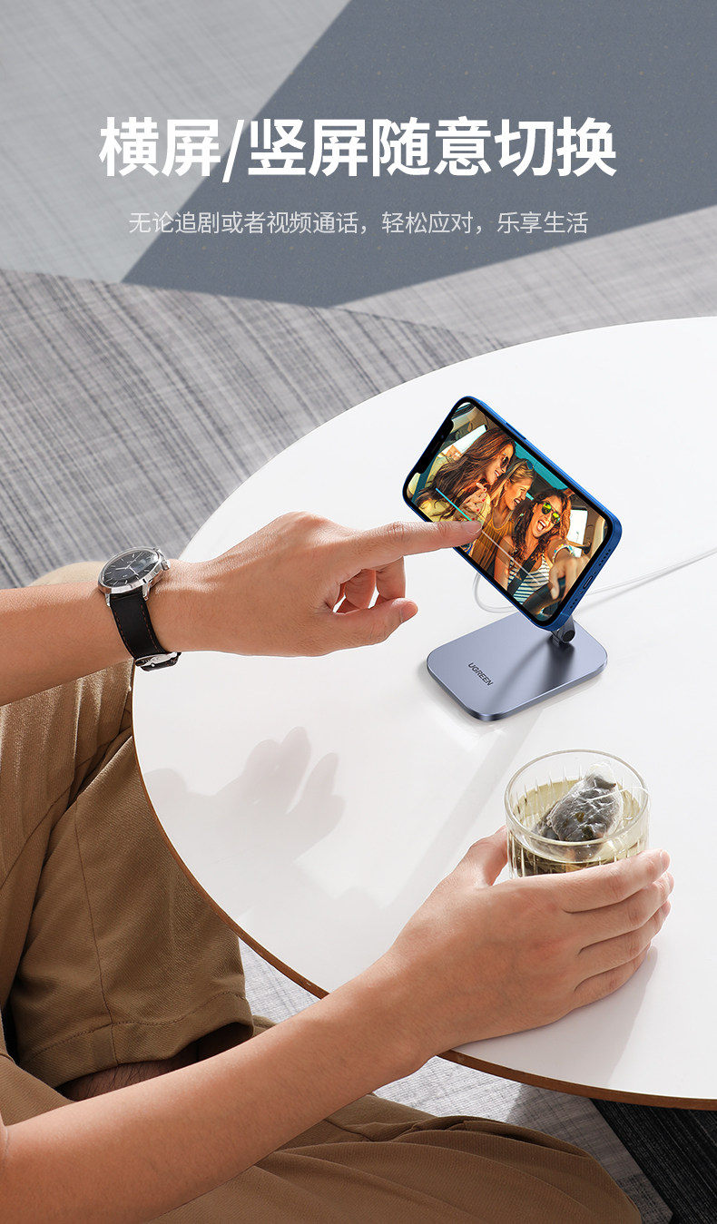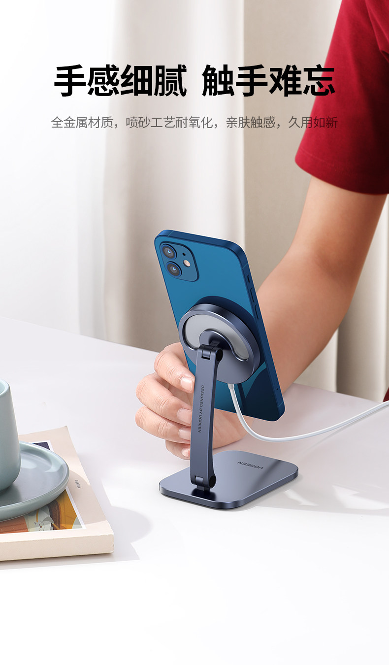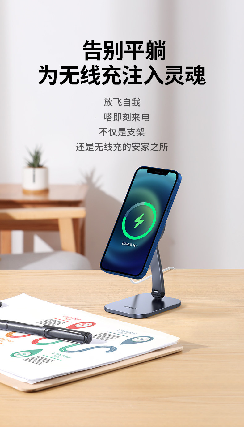 绿联 Беспроводная совместимая трубка, портативный настольный регулируемый держатель для телефона с аксессуарами с зарядкой, складная маленькая металлическая опорная рама