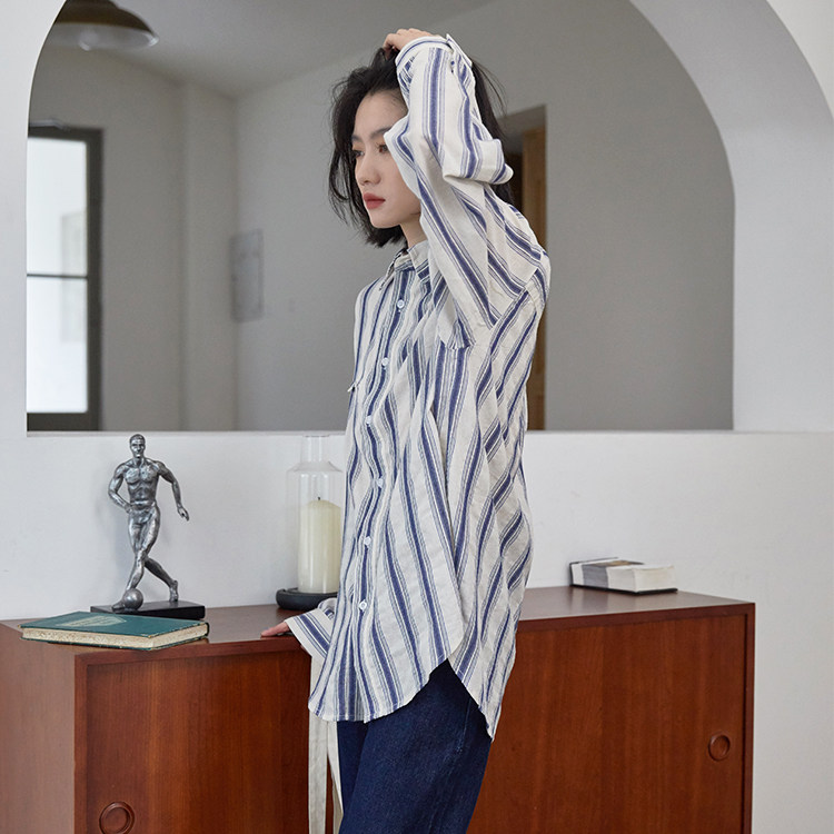 Осенняя ретро рубашка для отдыха, куртка, из хлопка и льна