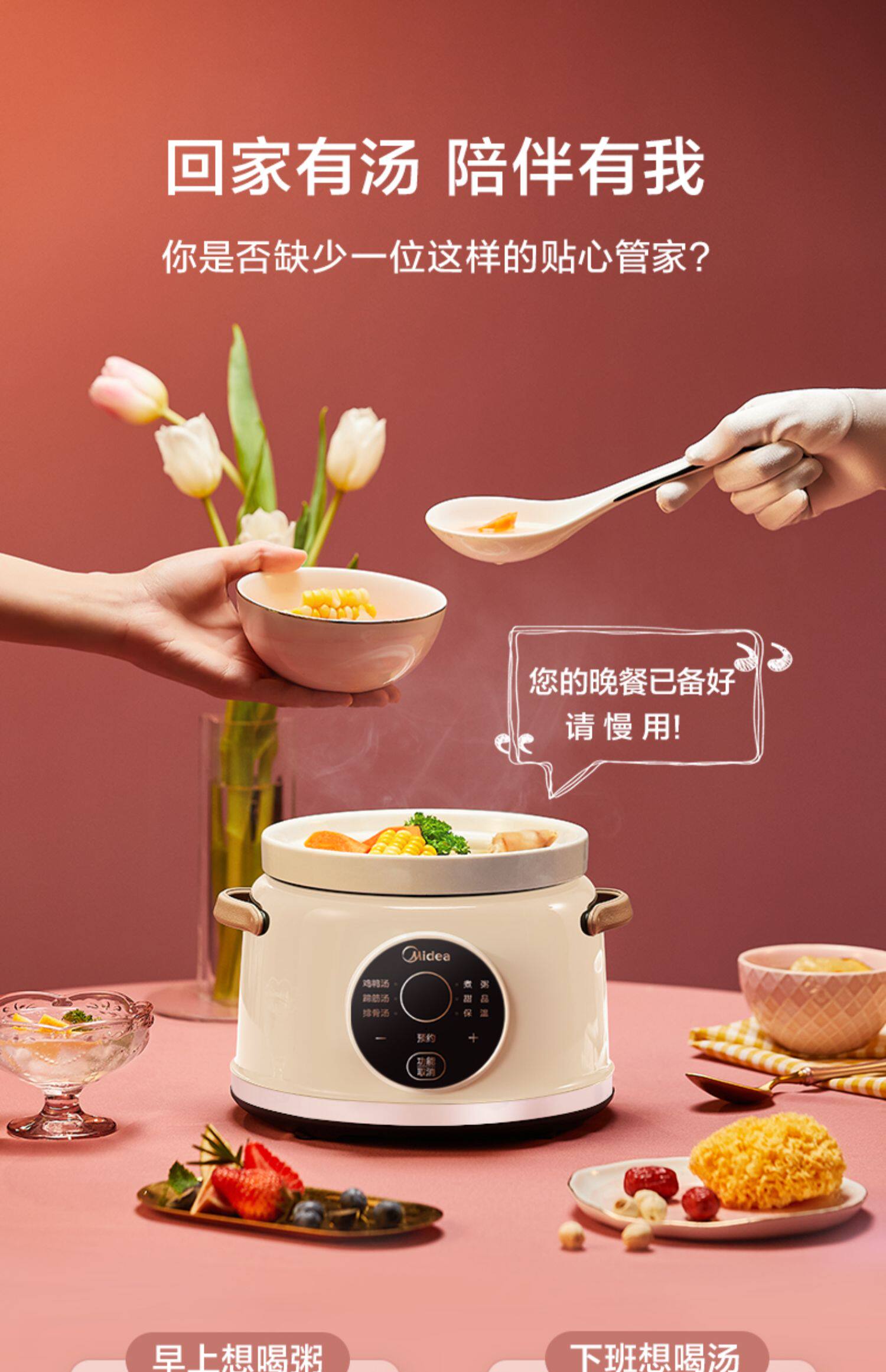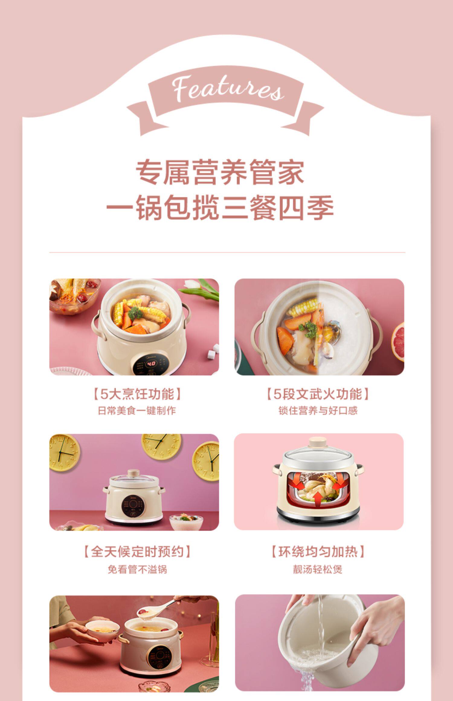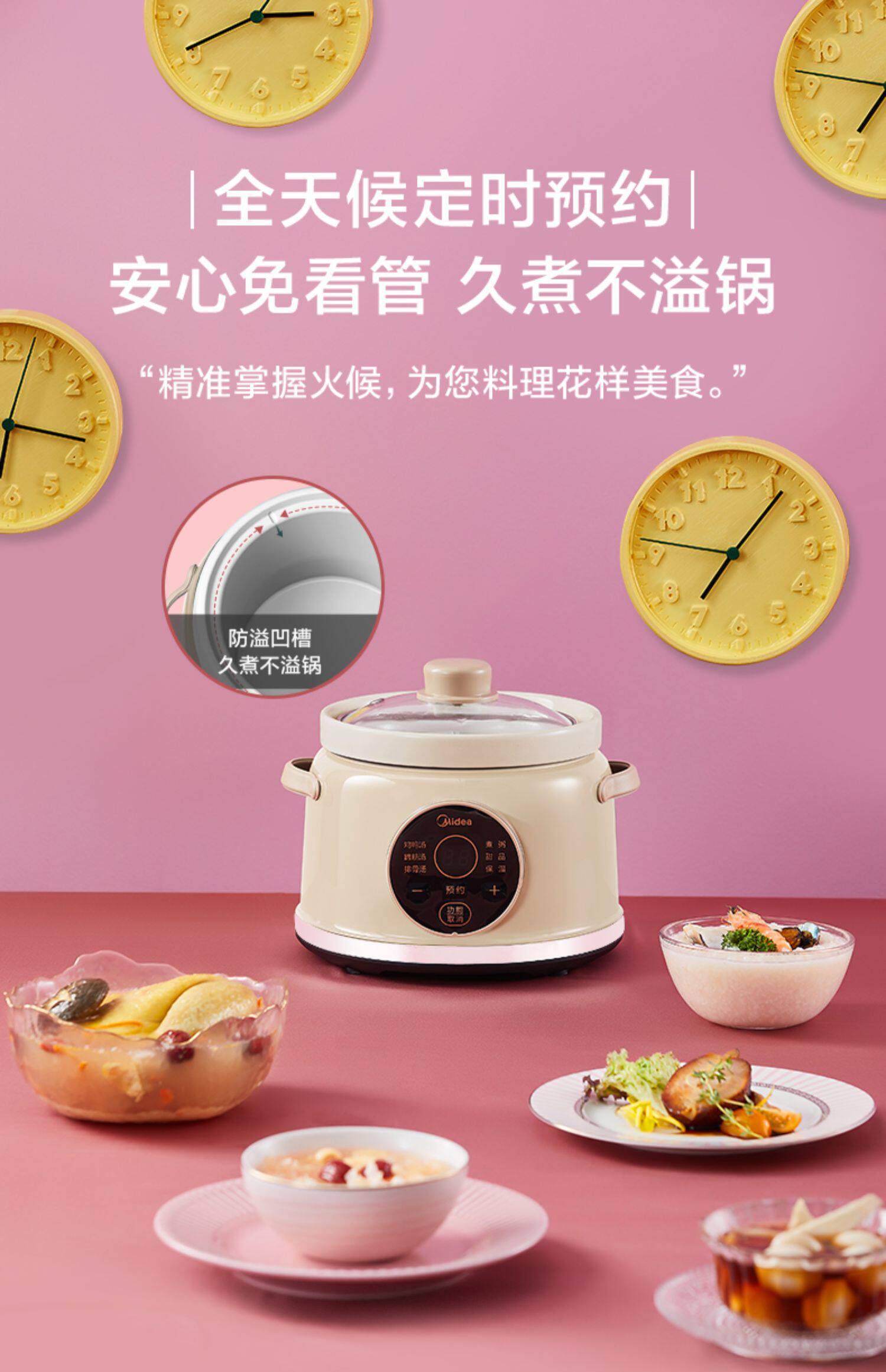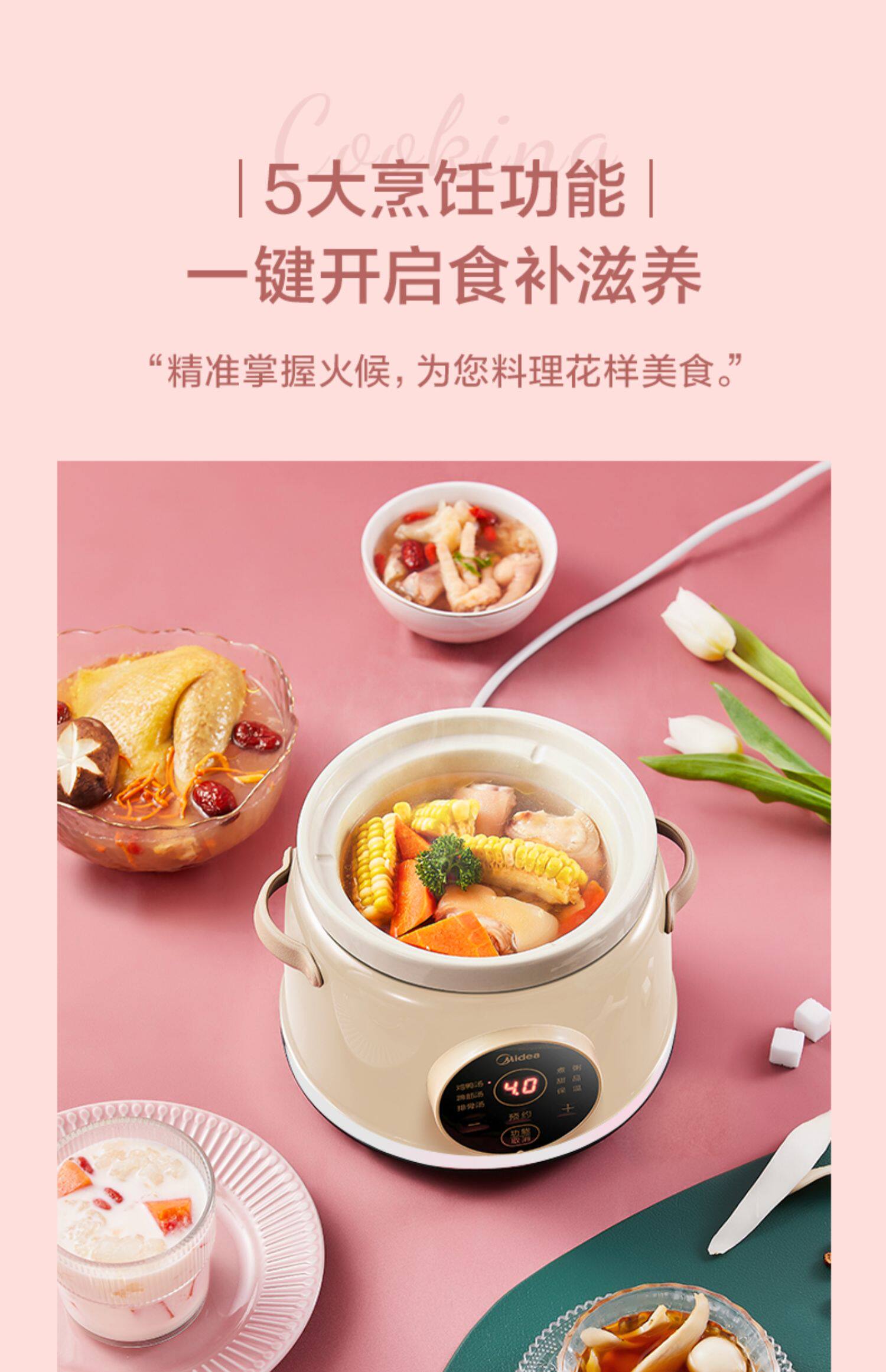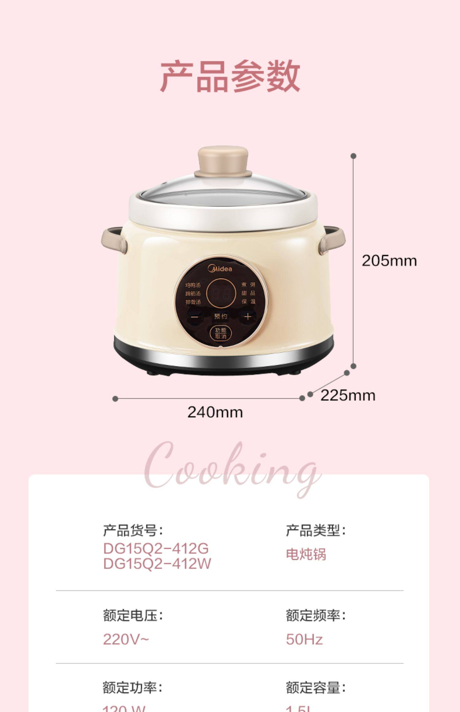 Midea тушеное горшок с полной автоматической интеллектуальной умной мини -керамикой тушеное мясо для горшка кара каша кара incret