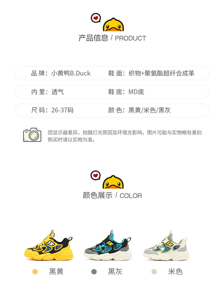 B.Duck [小黄鸭儿童童鞋春秋新男童运动鞋跑步鞋中大童小孩休闲鞋潮]