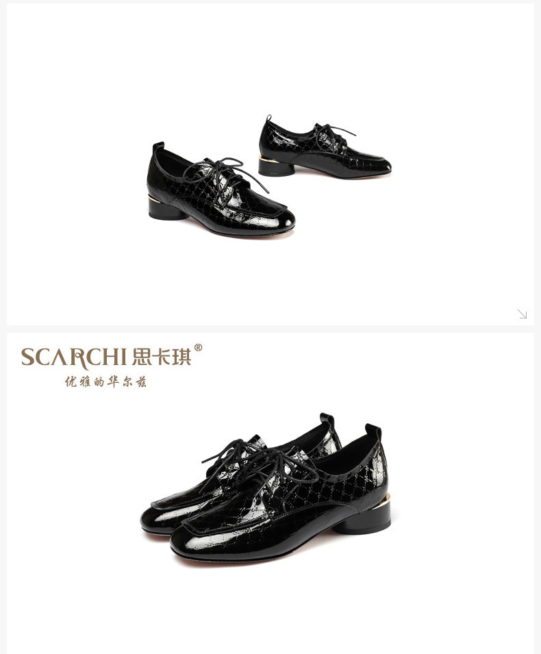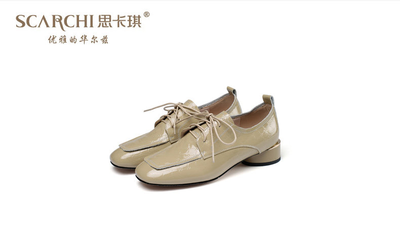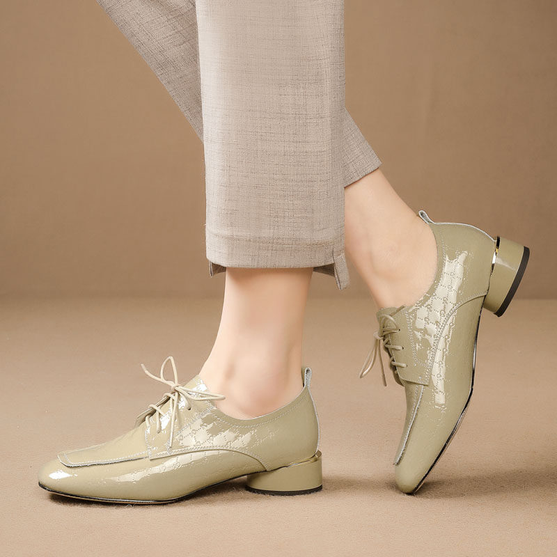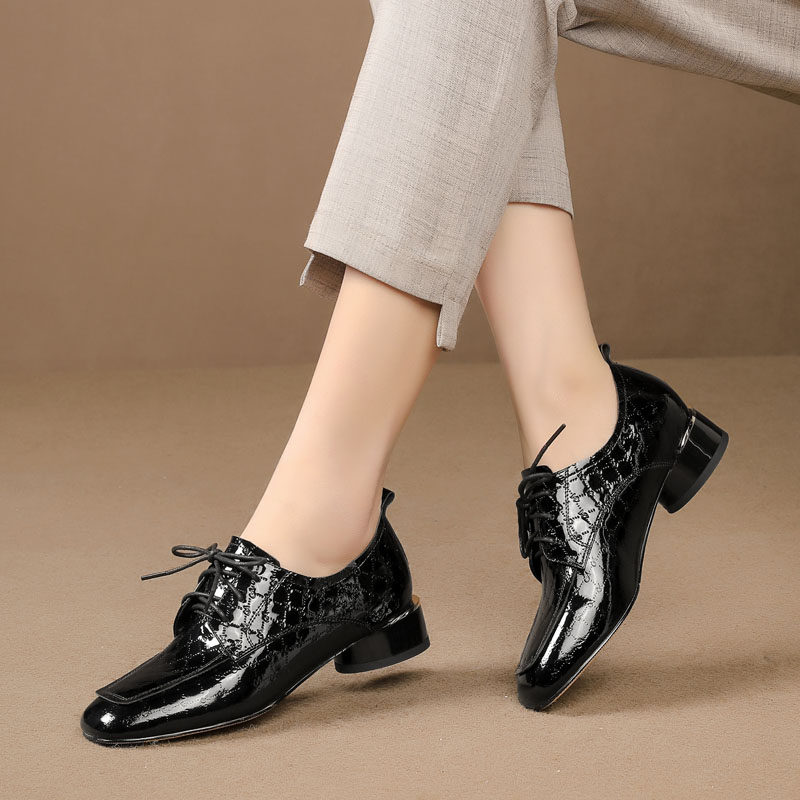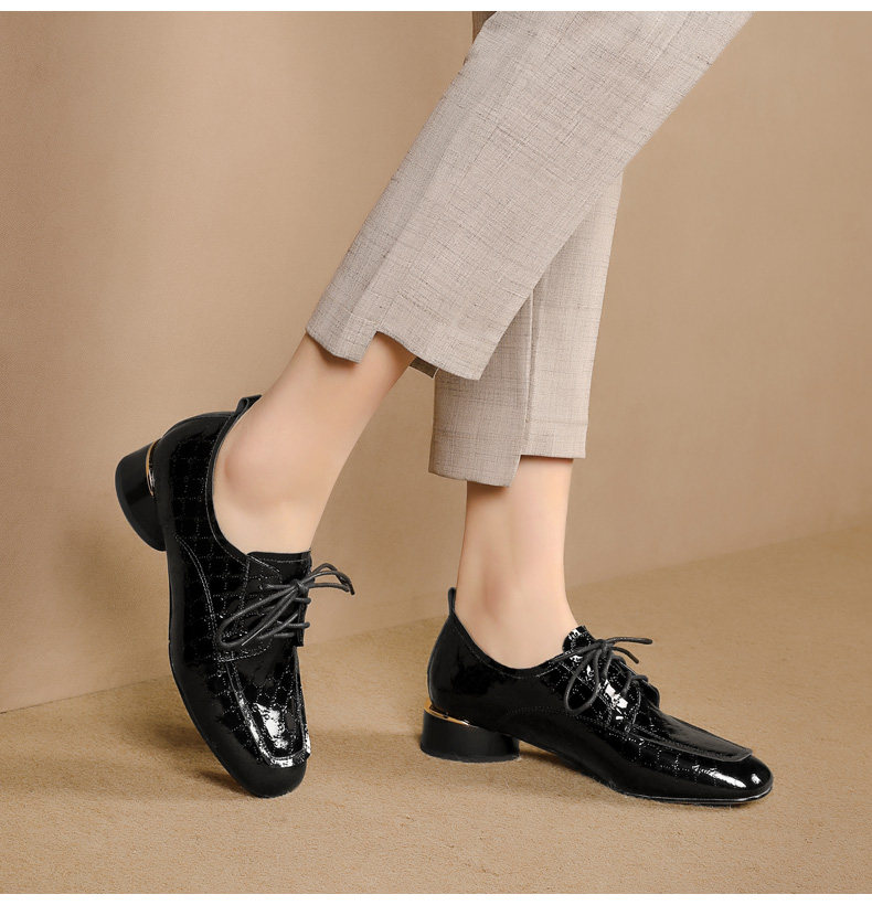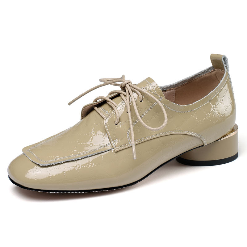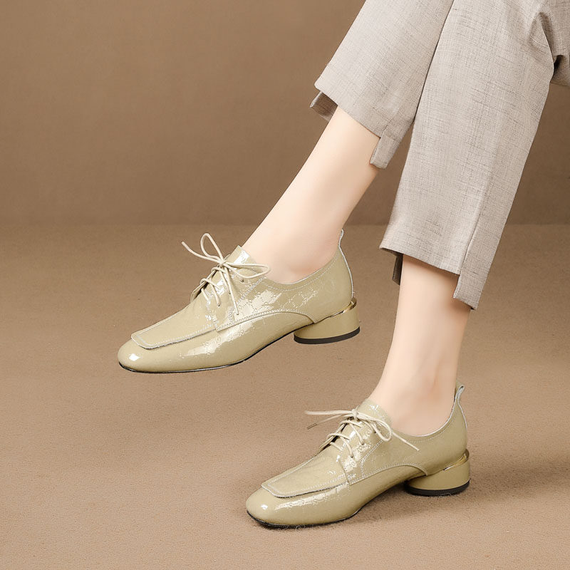 Голова Сика Каки густые каблуки одиночные туфли женская весна и осень Новое переднее кружево в средней и глубокой кожаной кожа