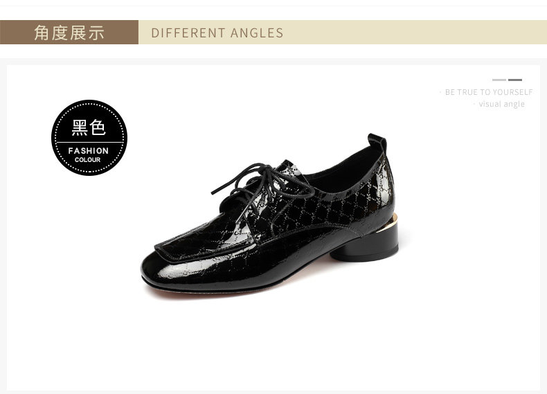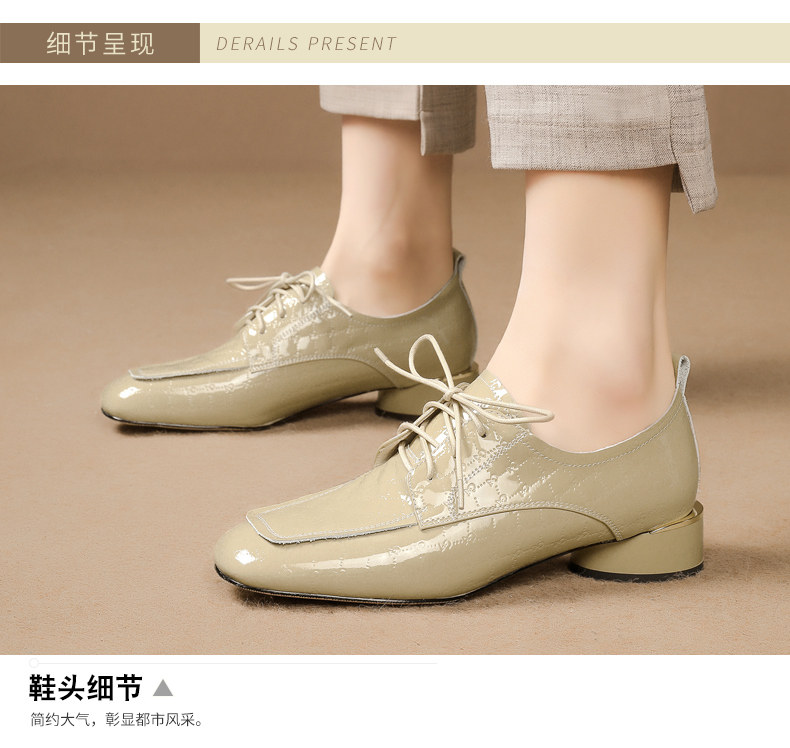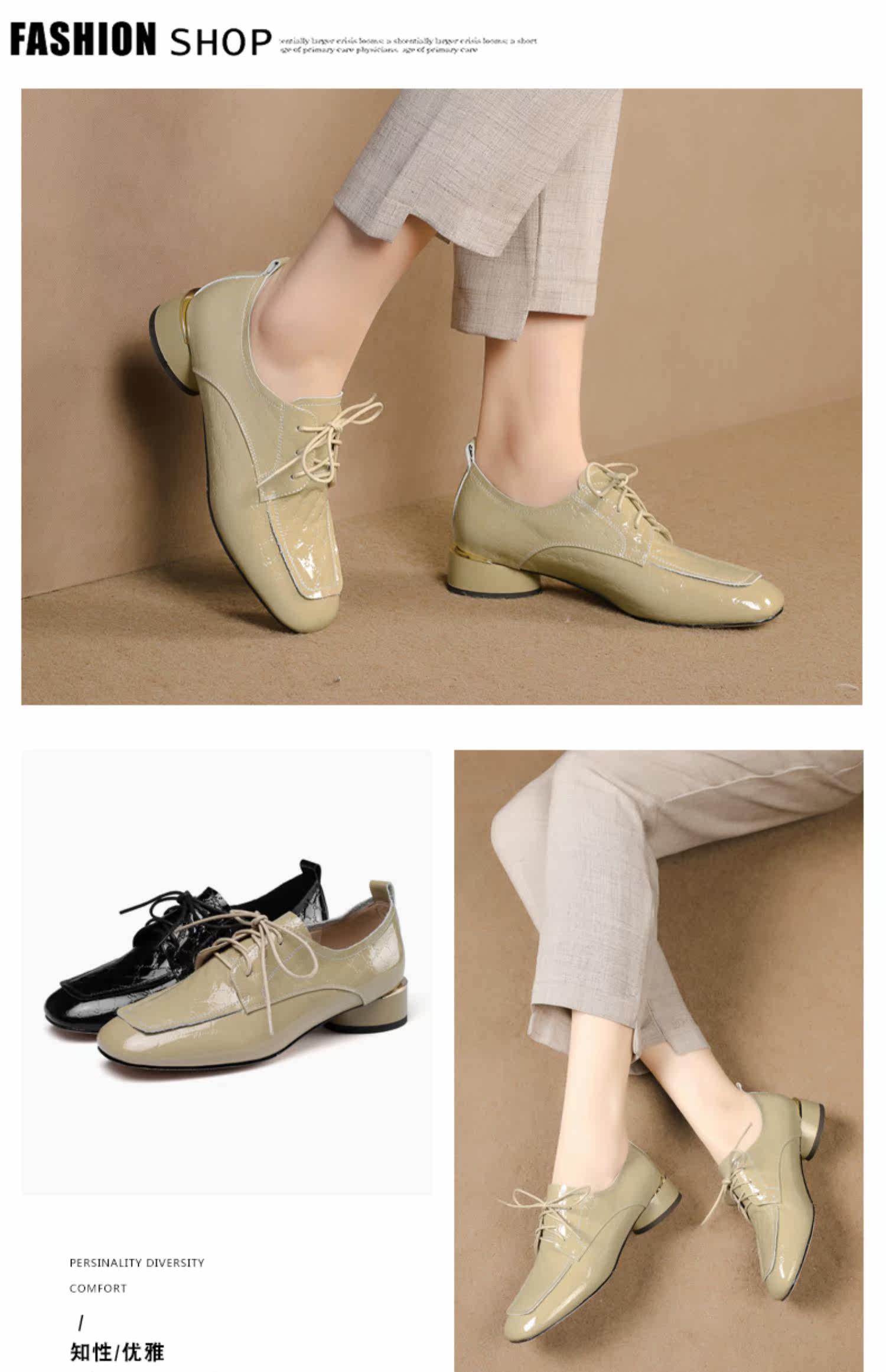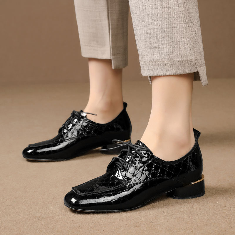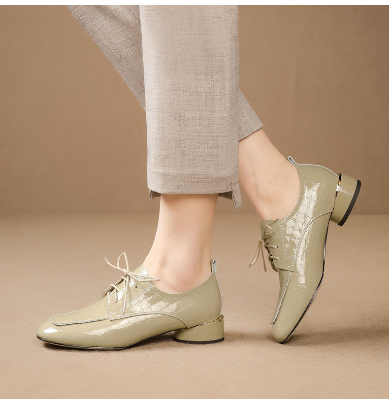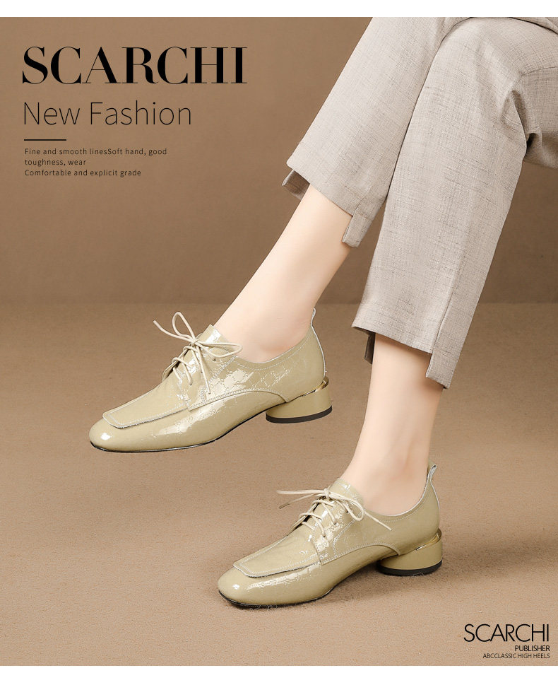 Голова Сика Каки густые каблуки одиночные туфли женская весна и осень Новое переднее кружево в средней и глубокой кожаной кожа