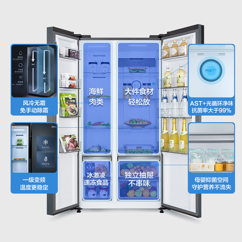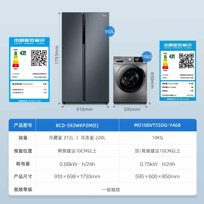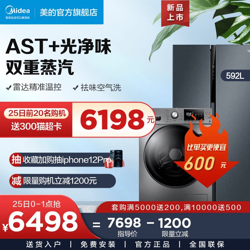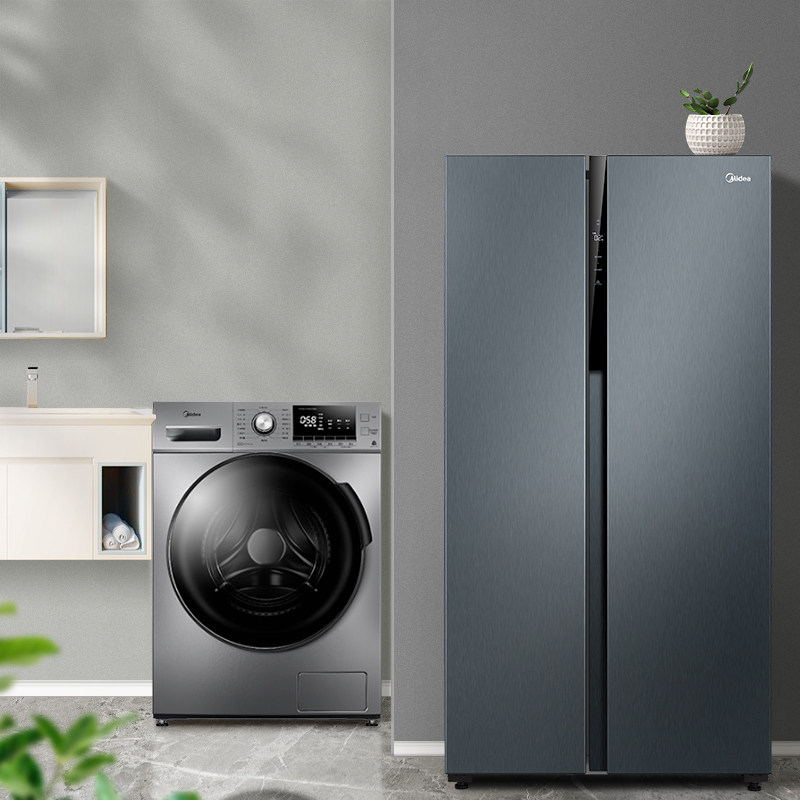 [Ледовочная моляльная установка] Midea 592 двойная открывающаяся дверь плазон холодильник+10 кг полной автоматической стиральной машины для дома.
