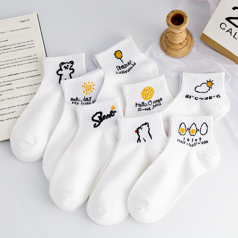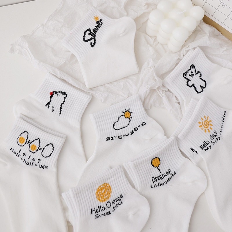 Tide, белые осенние тонкие мультяшные милые японские носки, средней длины