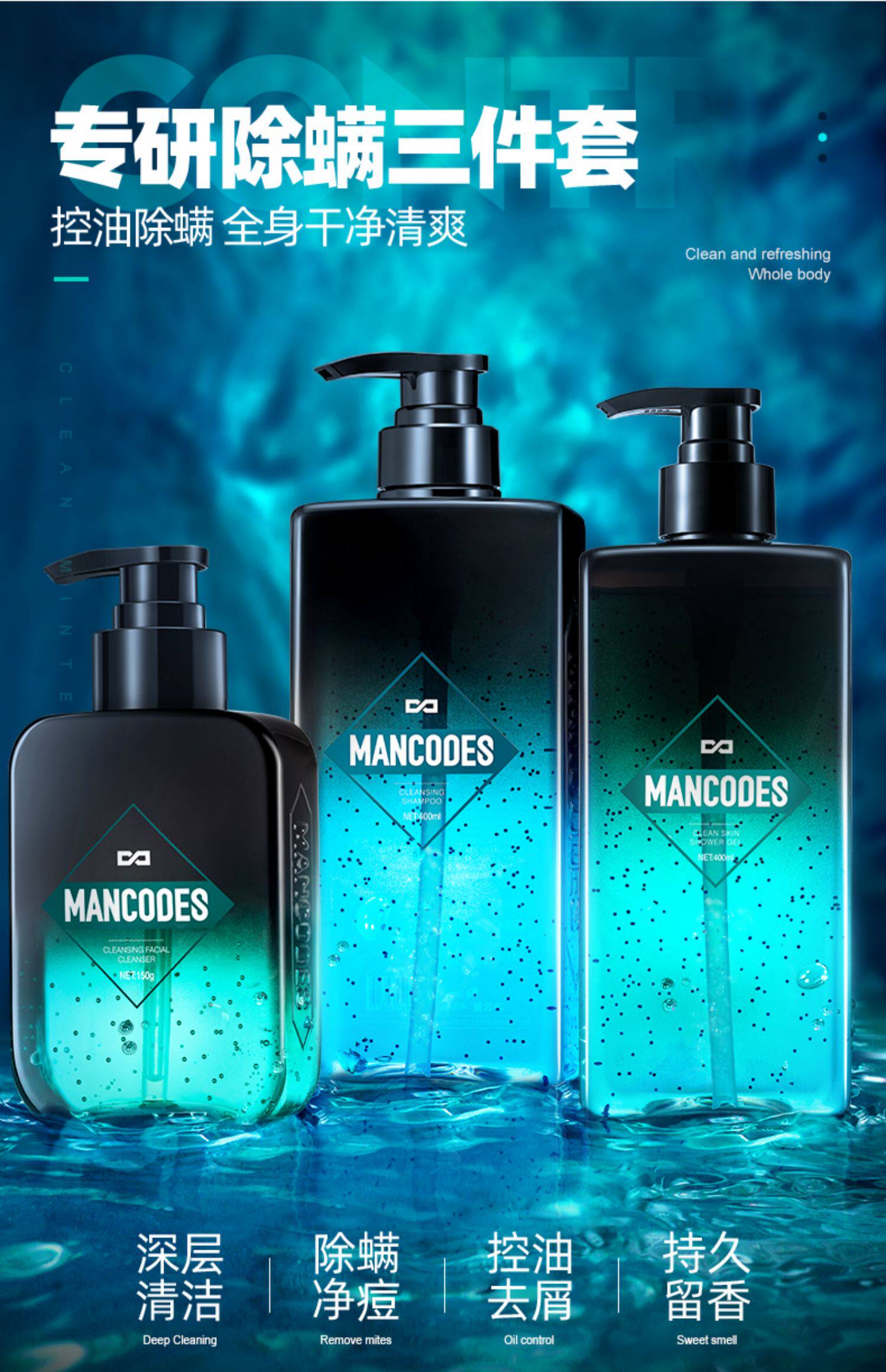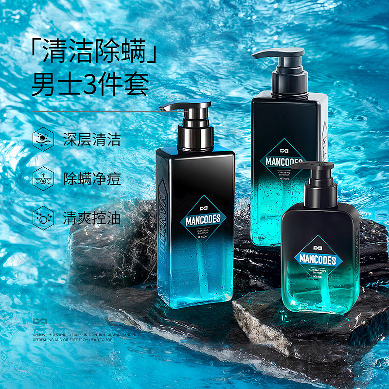 Комплект, очищающее молочко, шампунь, увлажняющий гель для душа для лица, 3 предмета, анти-акне