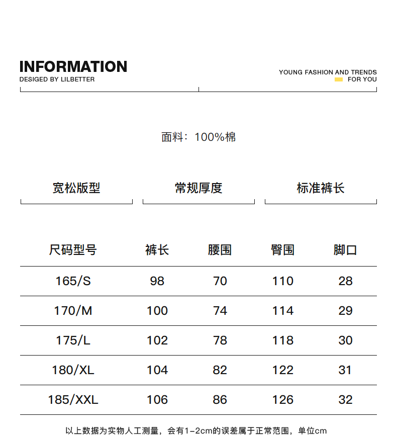 - = 185/XXL 175/L 180/XL