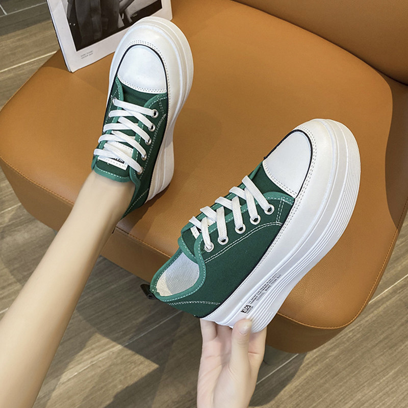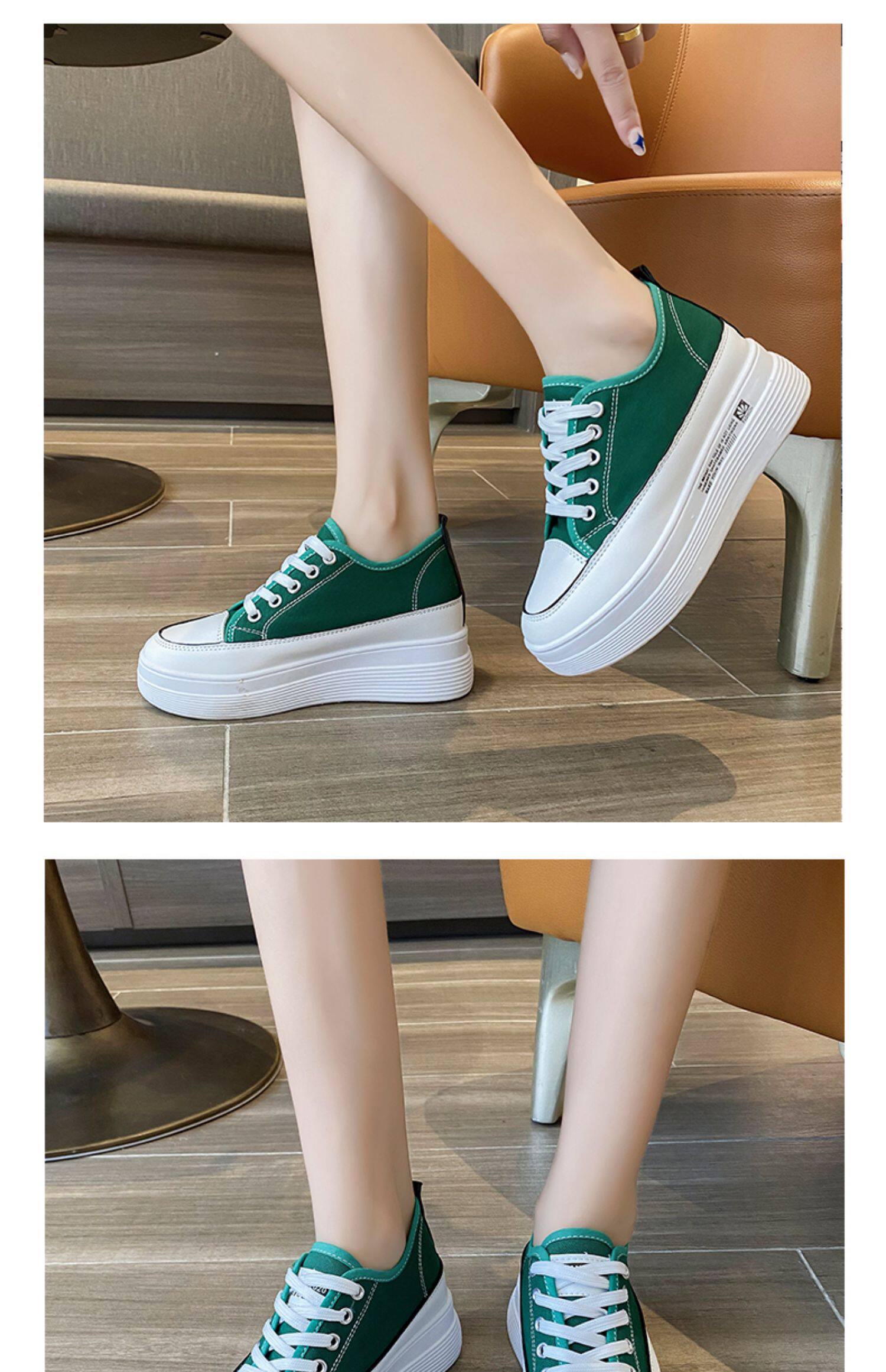 Высокая универсальная зеленая тканевая весенняя дышащая белая обувь, кроссовки на платформе, модель весна/осень 2022 года