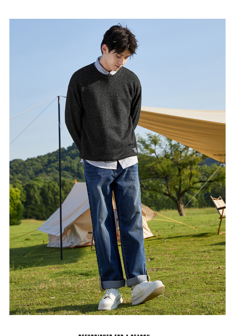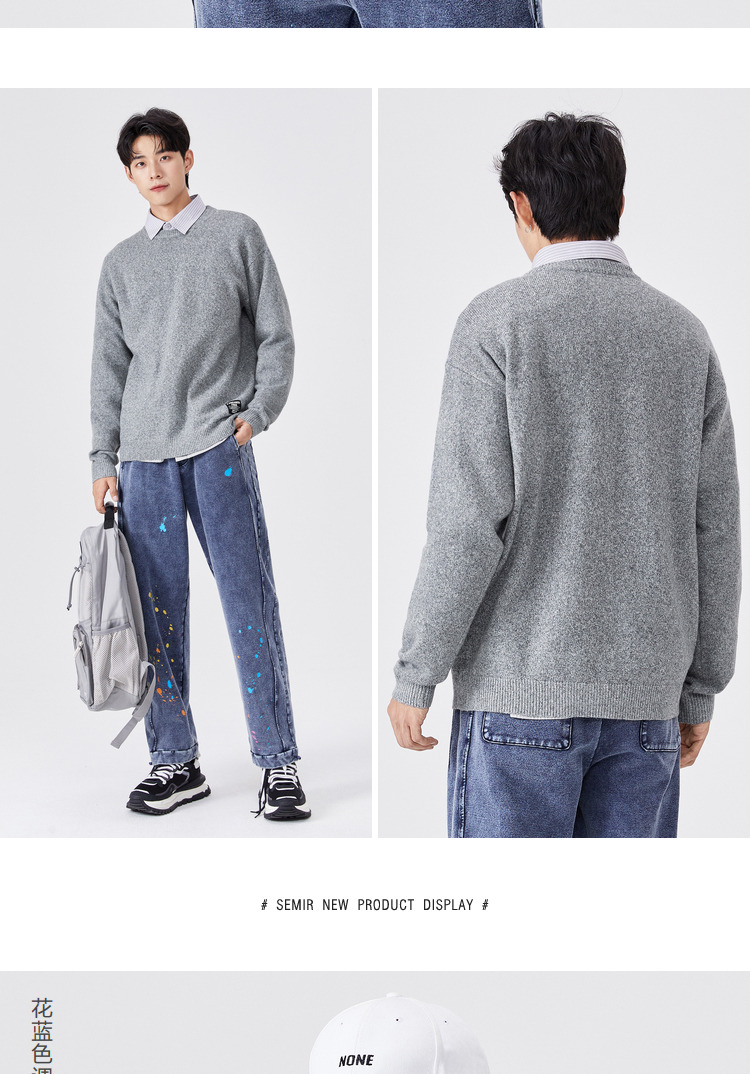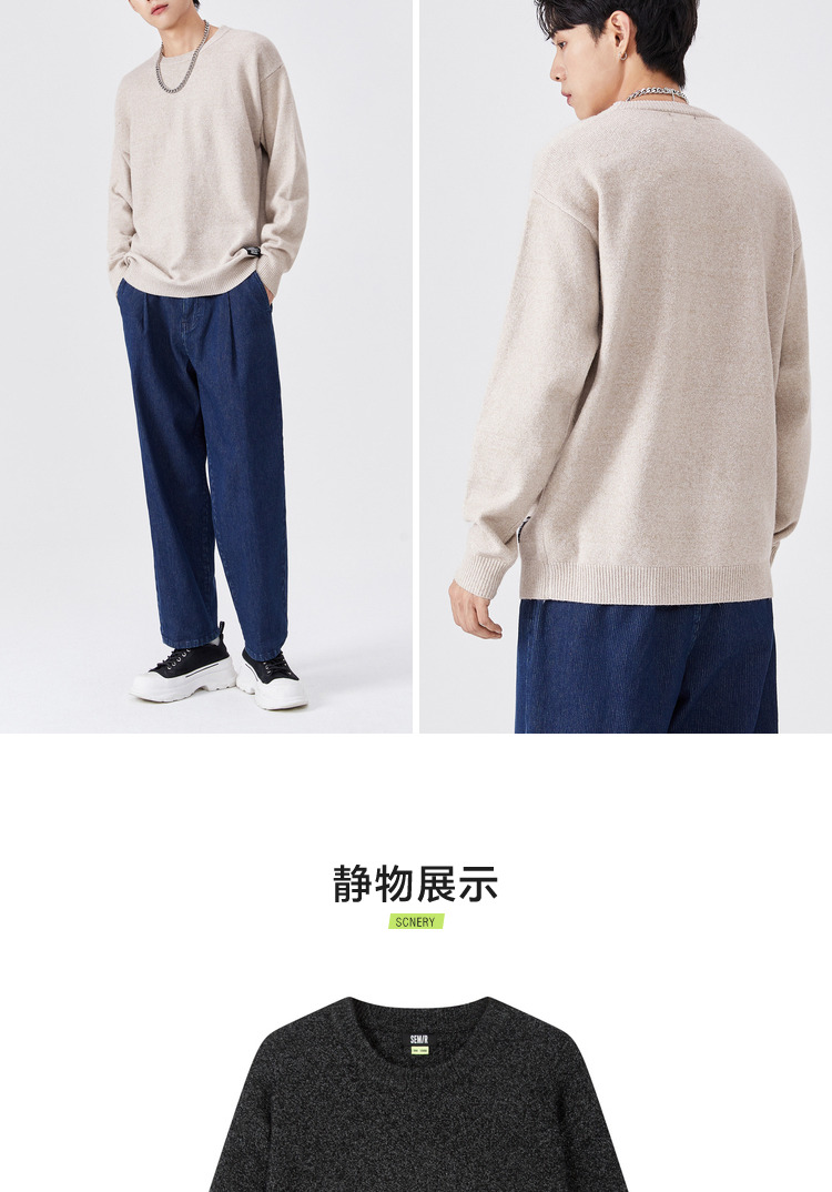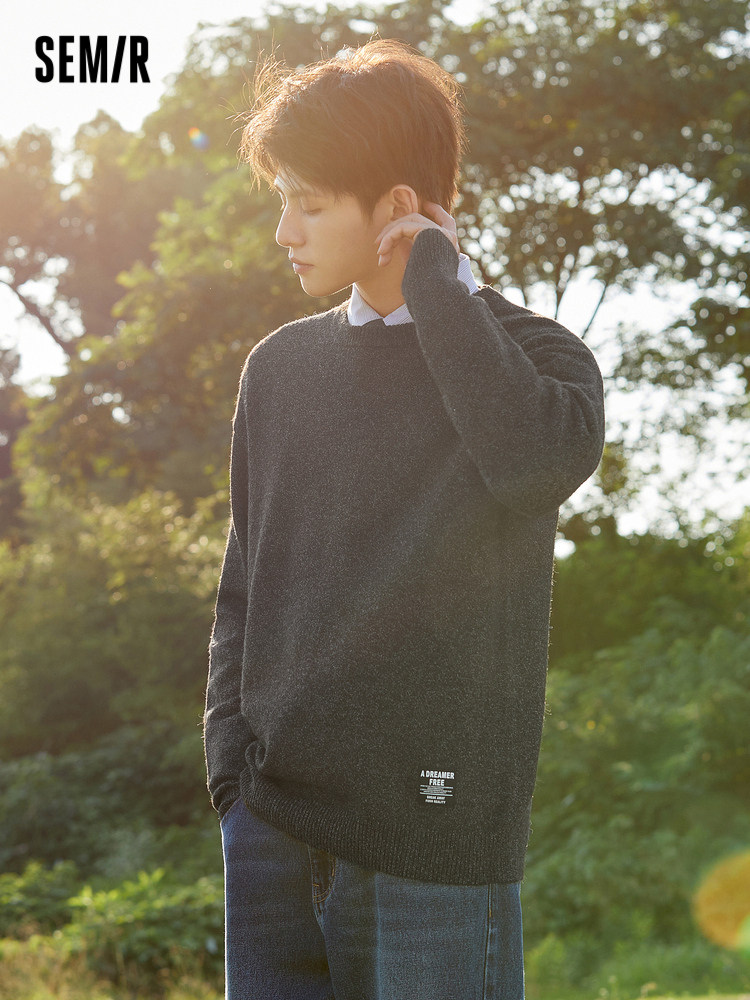 Semir, трикотажный осенний мужской черный японский свитер для отдыха, коллекция 2021, круглый воротник