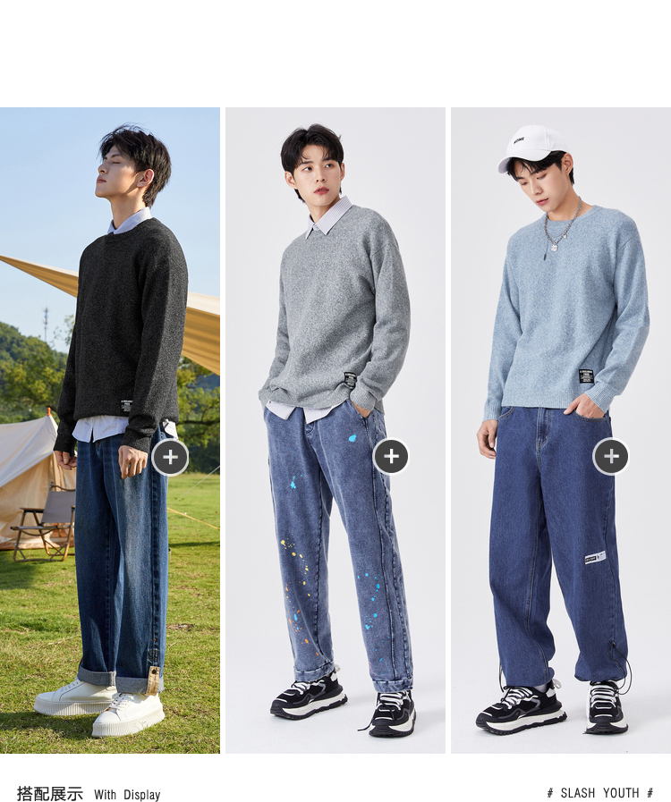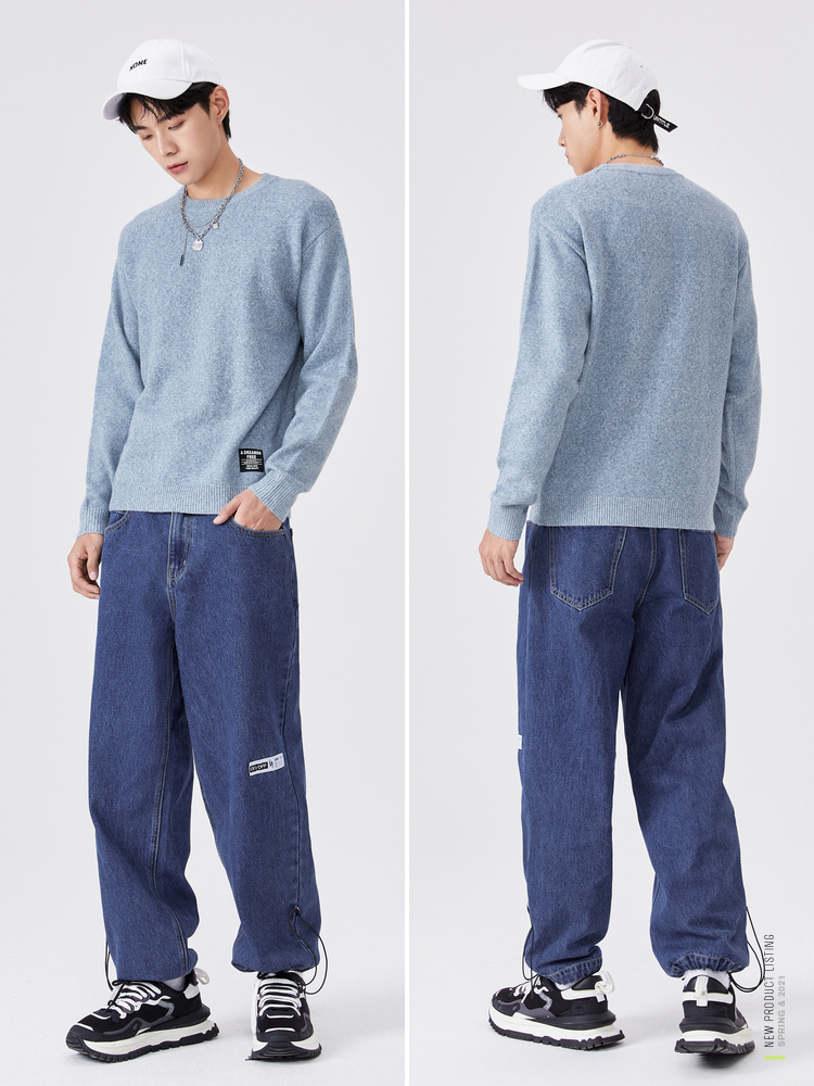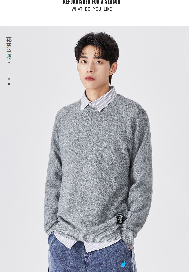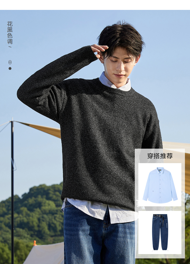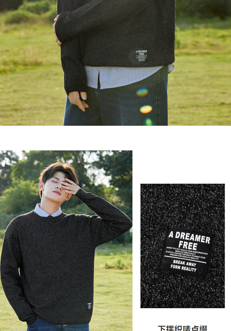 Semir, трикотажный осенний мужской черный японский свитер для отдыха, коллекция 2021, круглый воротник