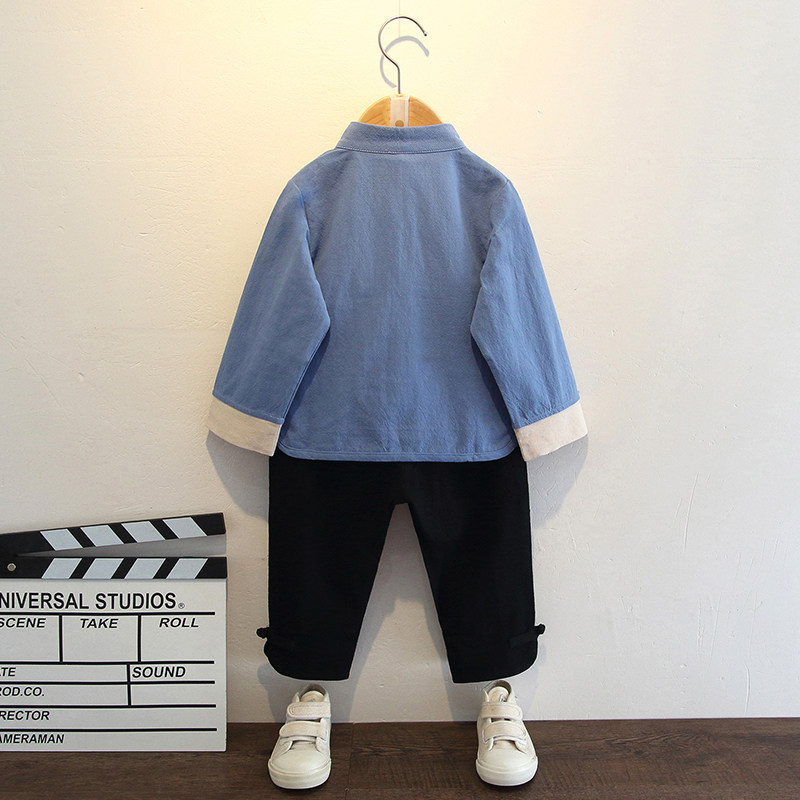 Осеннее ханьфу для мальчиков, детский лонгслив, платье, комплект, китайский стиль, детская одежда, наряд на выход