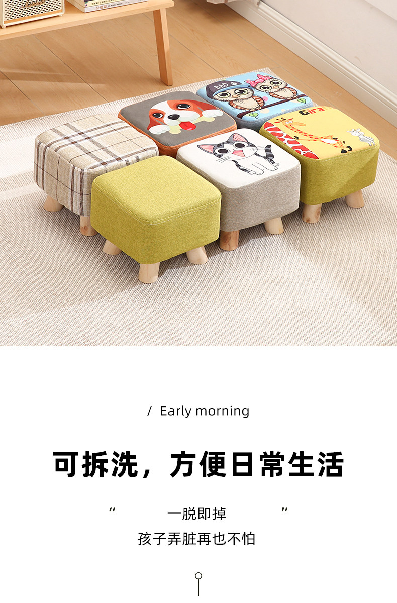 Маленький табурет домохозяйство с твердым деревом карликового табурета сильные дети, детский мультипликационный творческий диван -табурет кубический стул Кубический табурет простая скамья