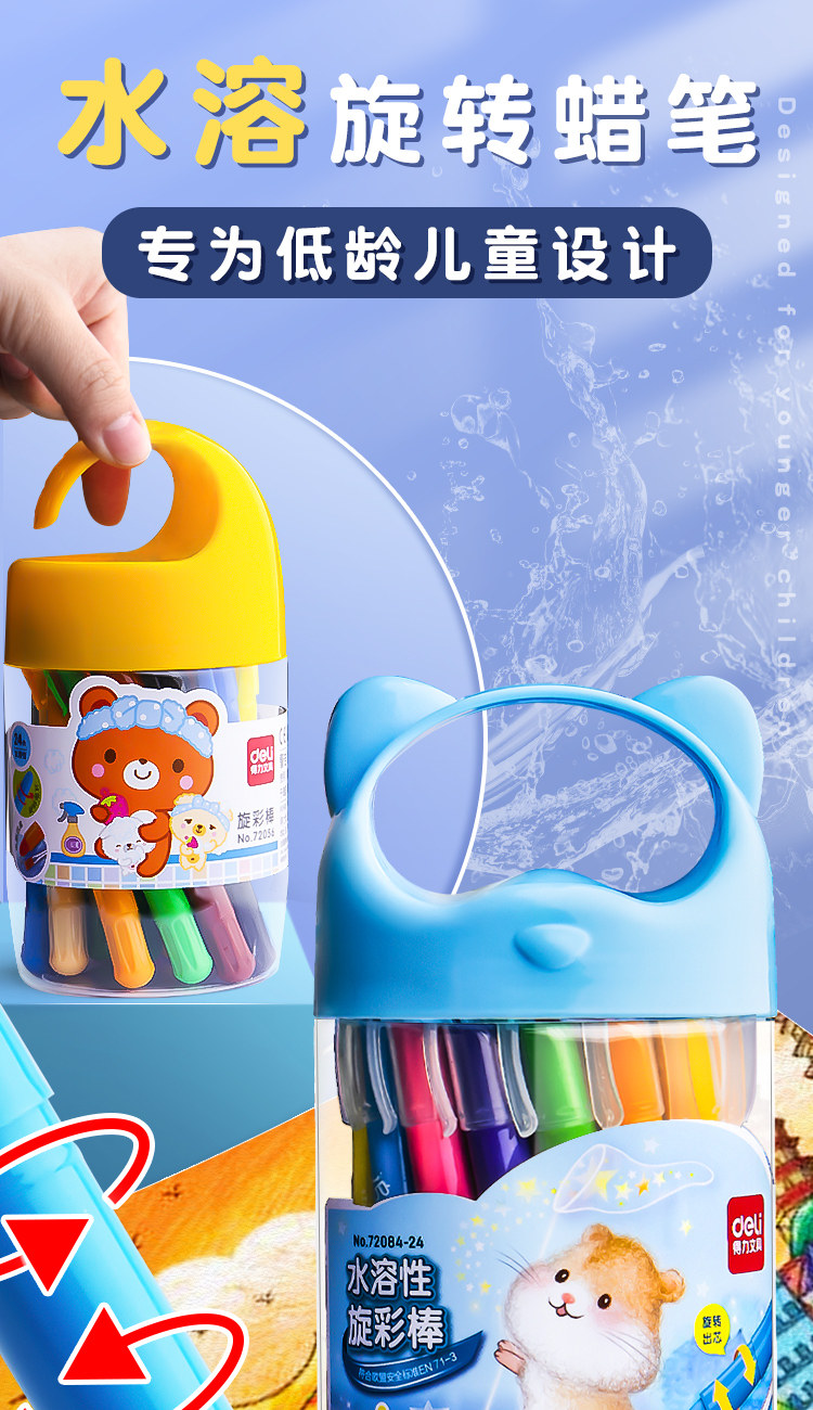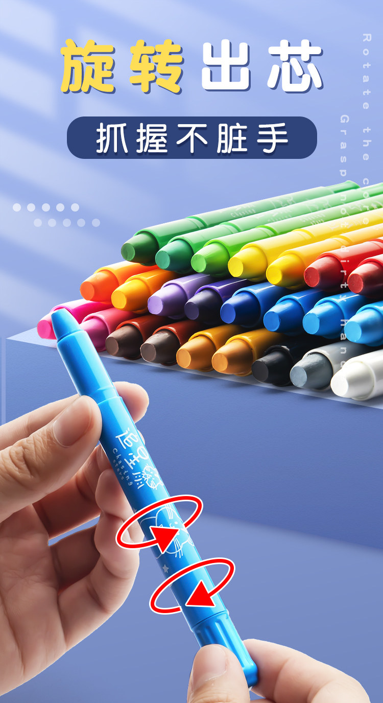 Водорастворимая крутящаяся детская масляная пастель, мелки для детского сада, кисть, комплект, безопасная нетоксичная раскраска для раннего возраста, можно стирать, 24 цветов, граффити