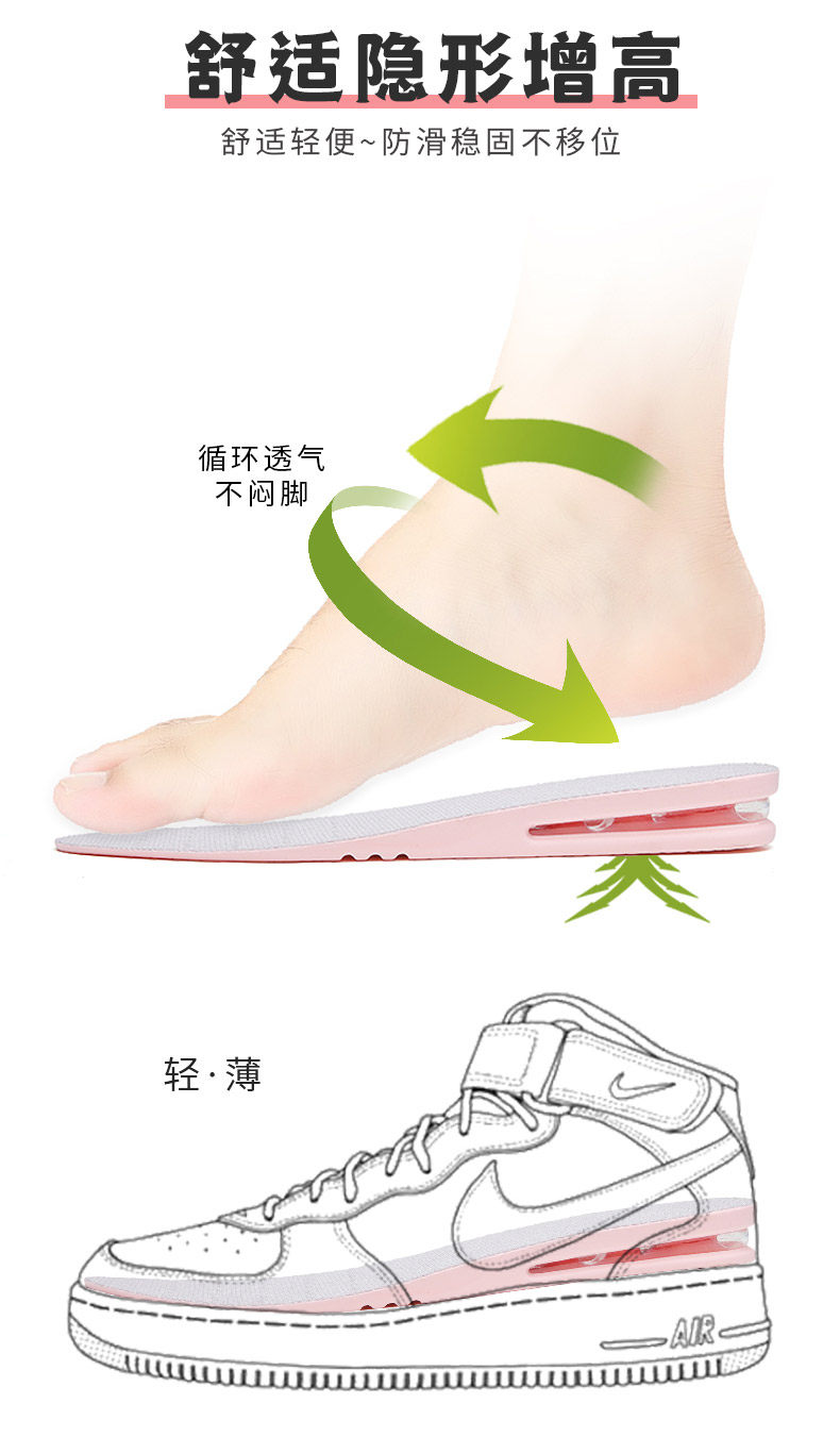 Комфортный кушон, тканевые невидимые полиуретановые амортизирующие стельки для увеличения роста
