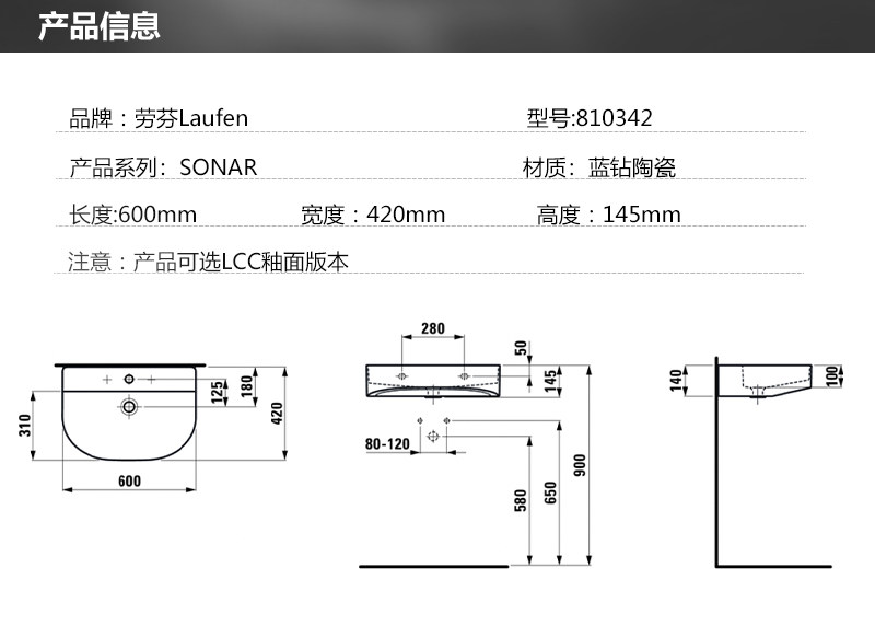 Оригинальная швейцарская керамическая раковина для ванной комнаты LAUFEN SONAR серии Blue Diamond 810342/810347